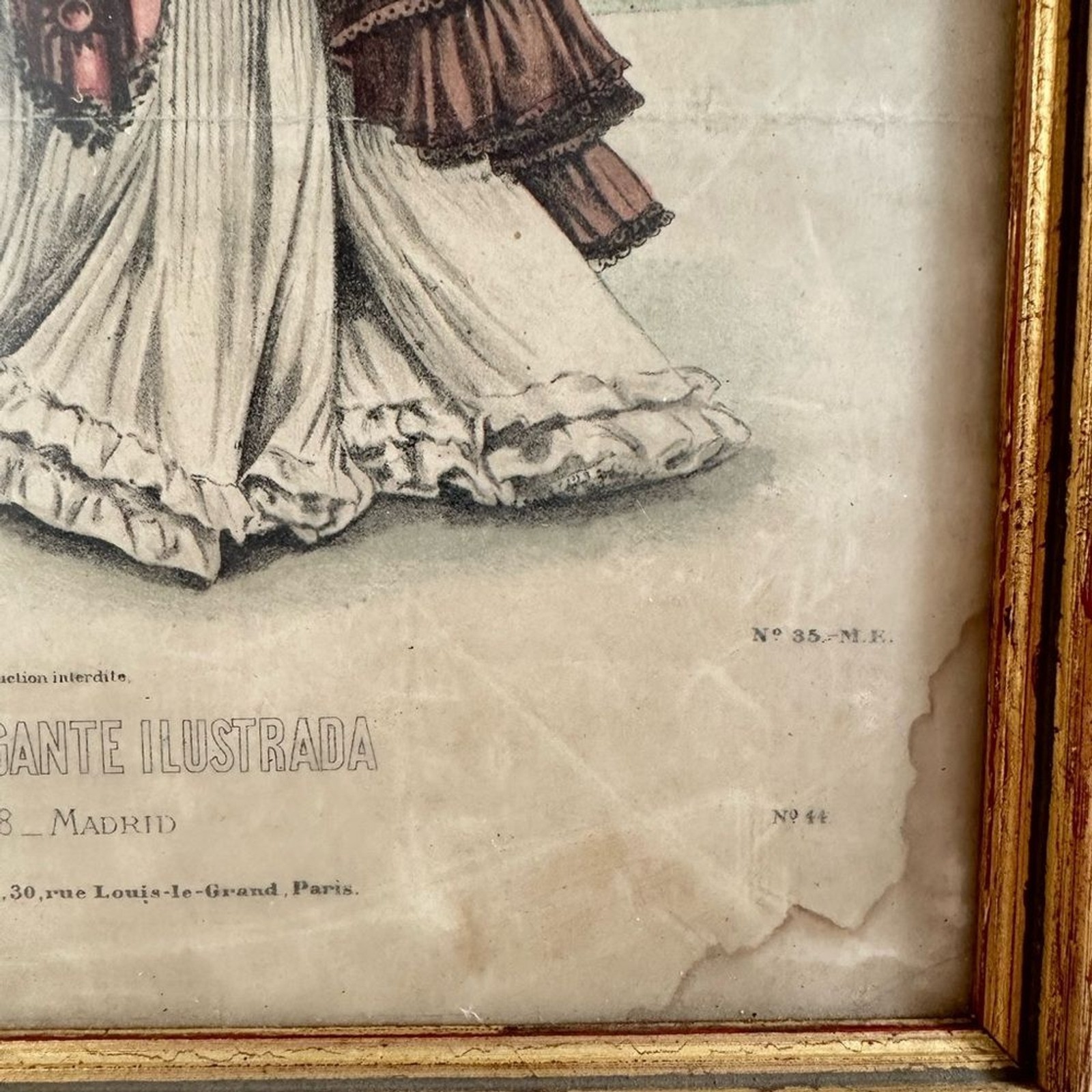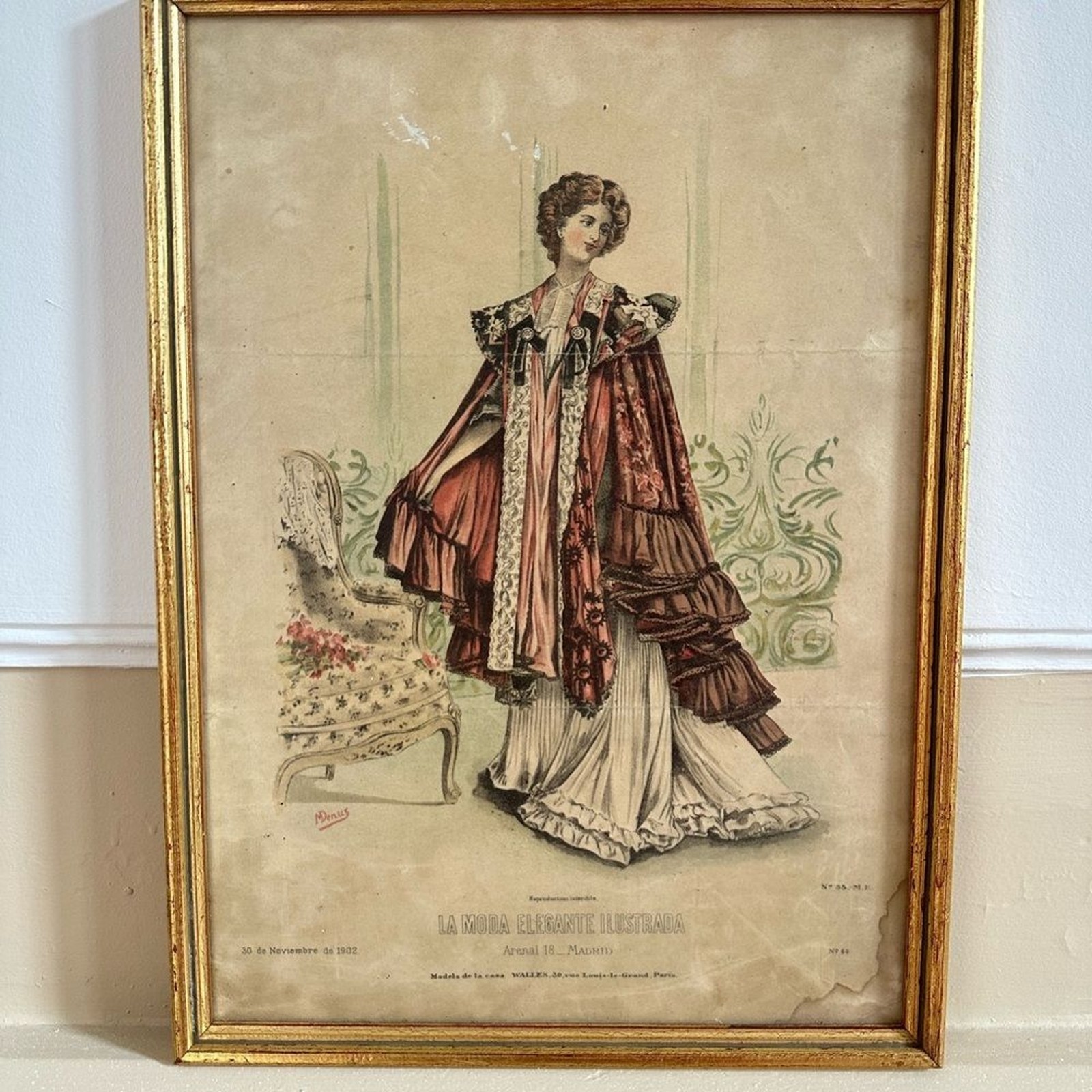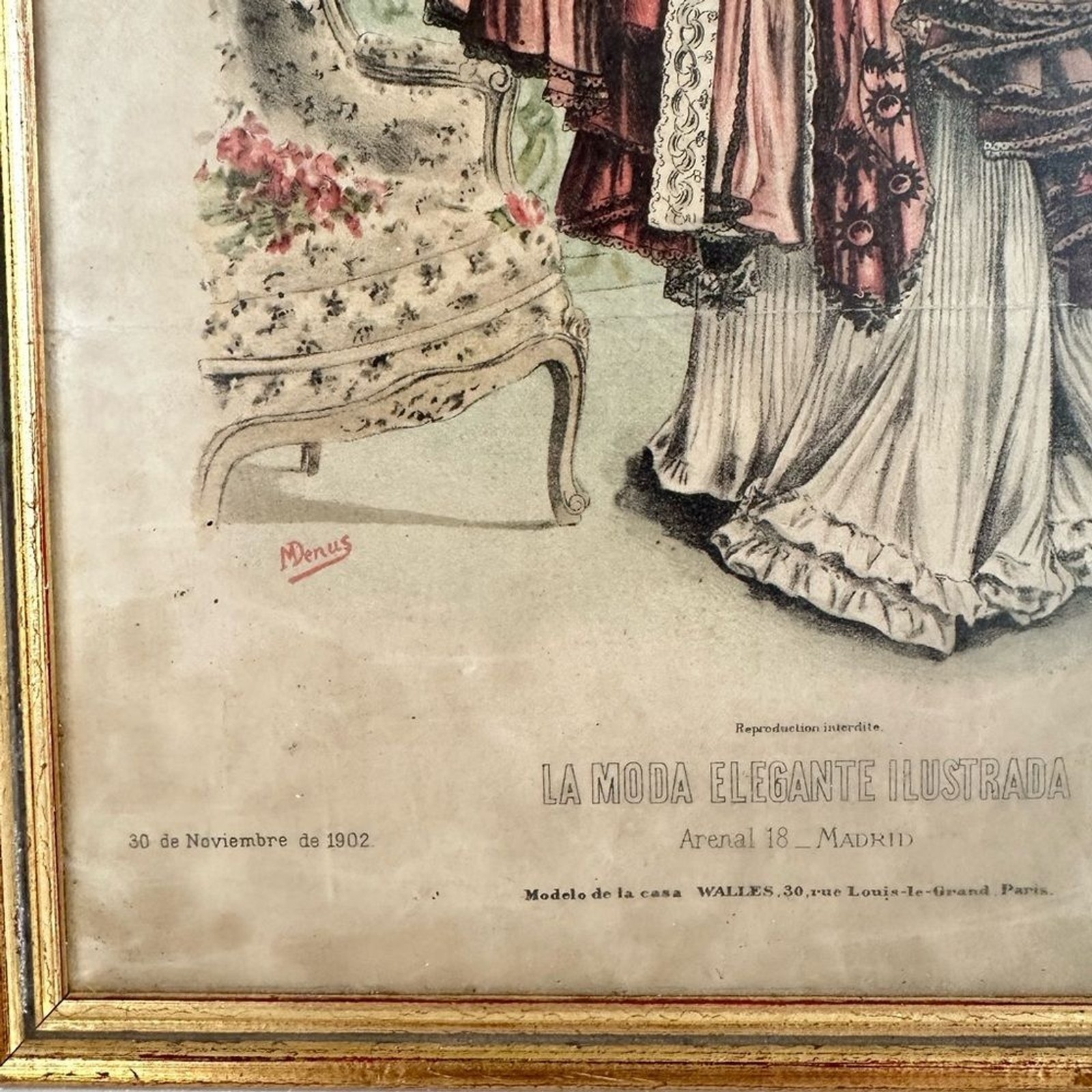 Antique 1902 La Moda Elegante Ilustrada Page Framed: Madrid Wall Decor