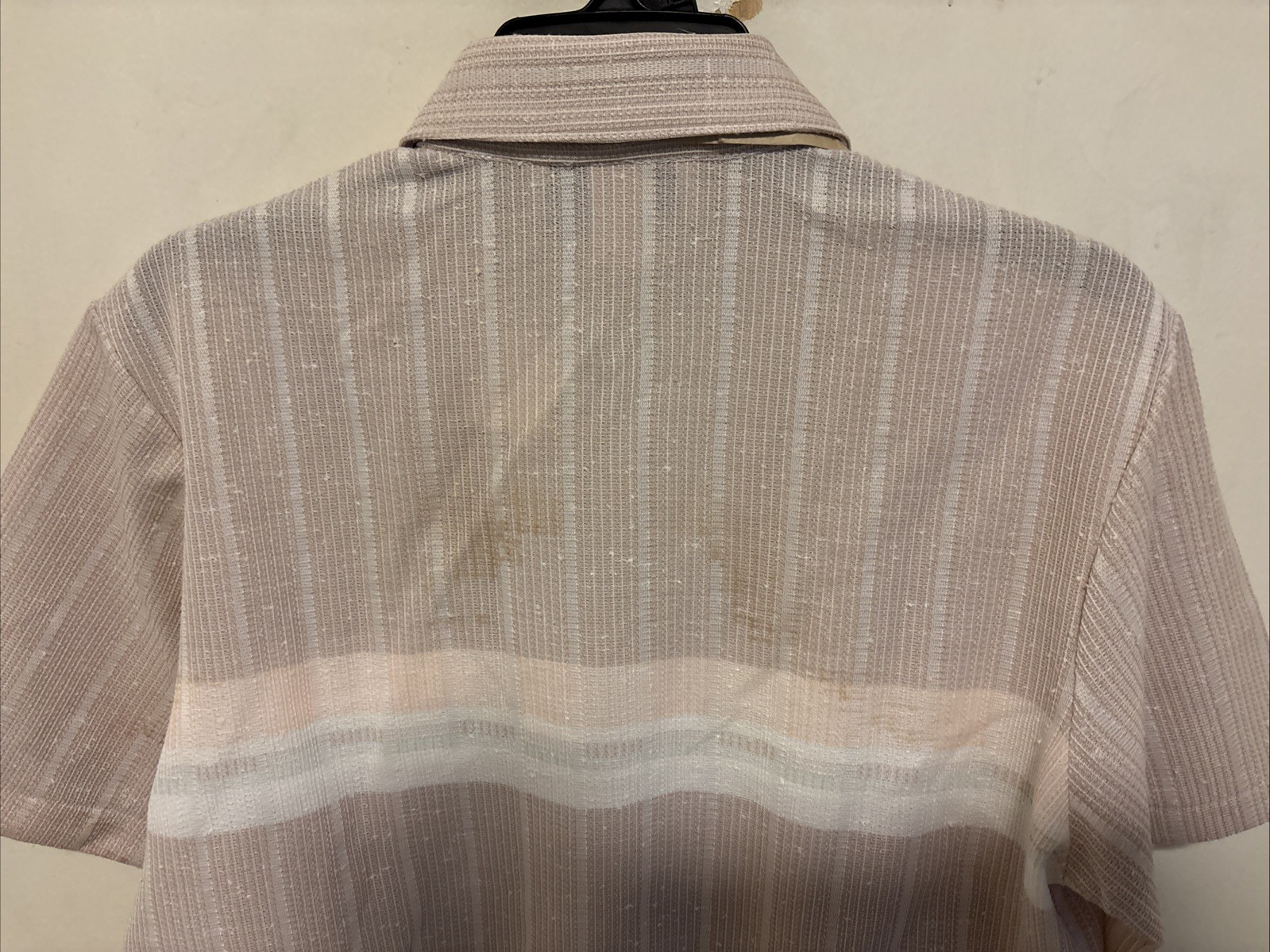 This Vintage Mr California Shirt is a stylish and retro addition to any man's wardrobe. Made from a polyester blend fabric in a classic beige color, this short sleeve button-up shirt features a plaid pattern and a collared neckline. Perfect for various occasions, from casual outings to formal events, this shirt exudes a 60s and 70s disco vibe with its USA-themed design. The regular fit and medium size make it a versatile piece that can be worn year-round, making it a timeless and unique choice for the modern man.