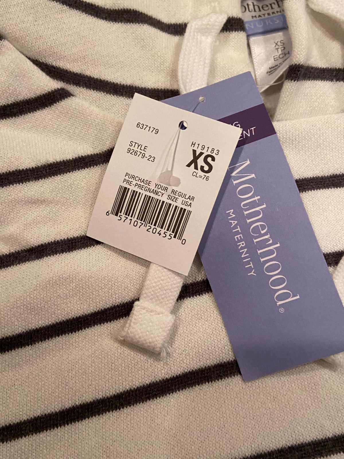 The XS nursing hoodie is new with the tags. It's made by Motherhood Maternity