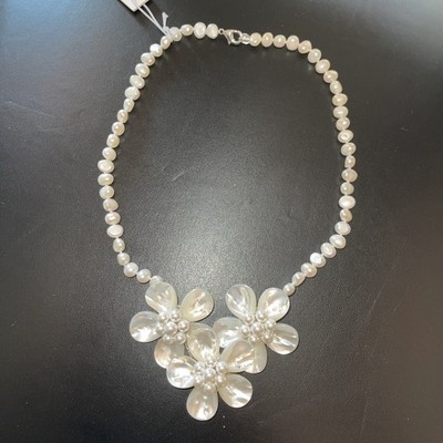 Iris & Lily Freshwater Pearl Jewelry 3-Florals Necklace new