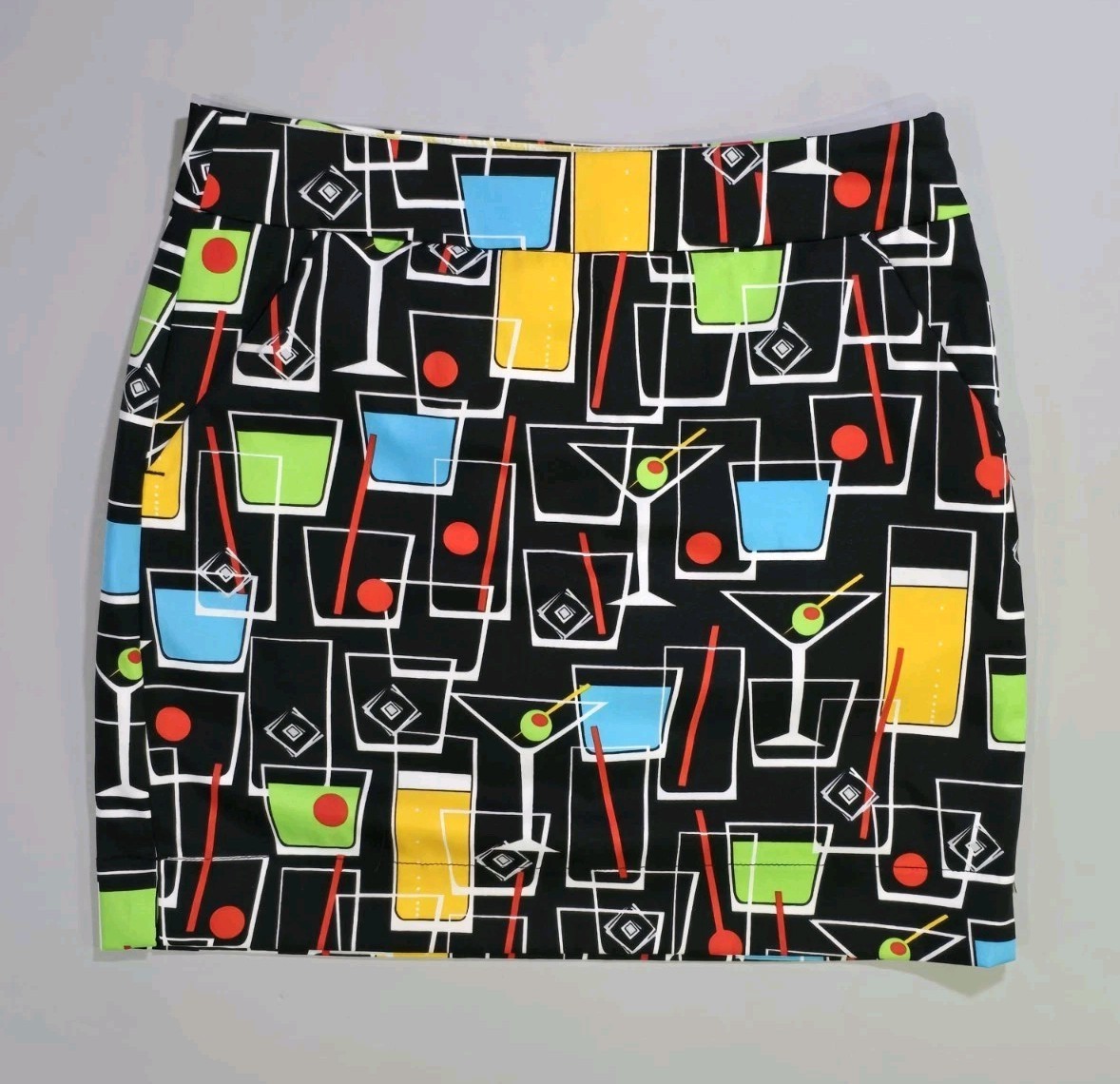 Loudmouth Golf Martini Olive All Over Print Golf Skort Skirt Womens Size 2 RARE