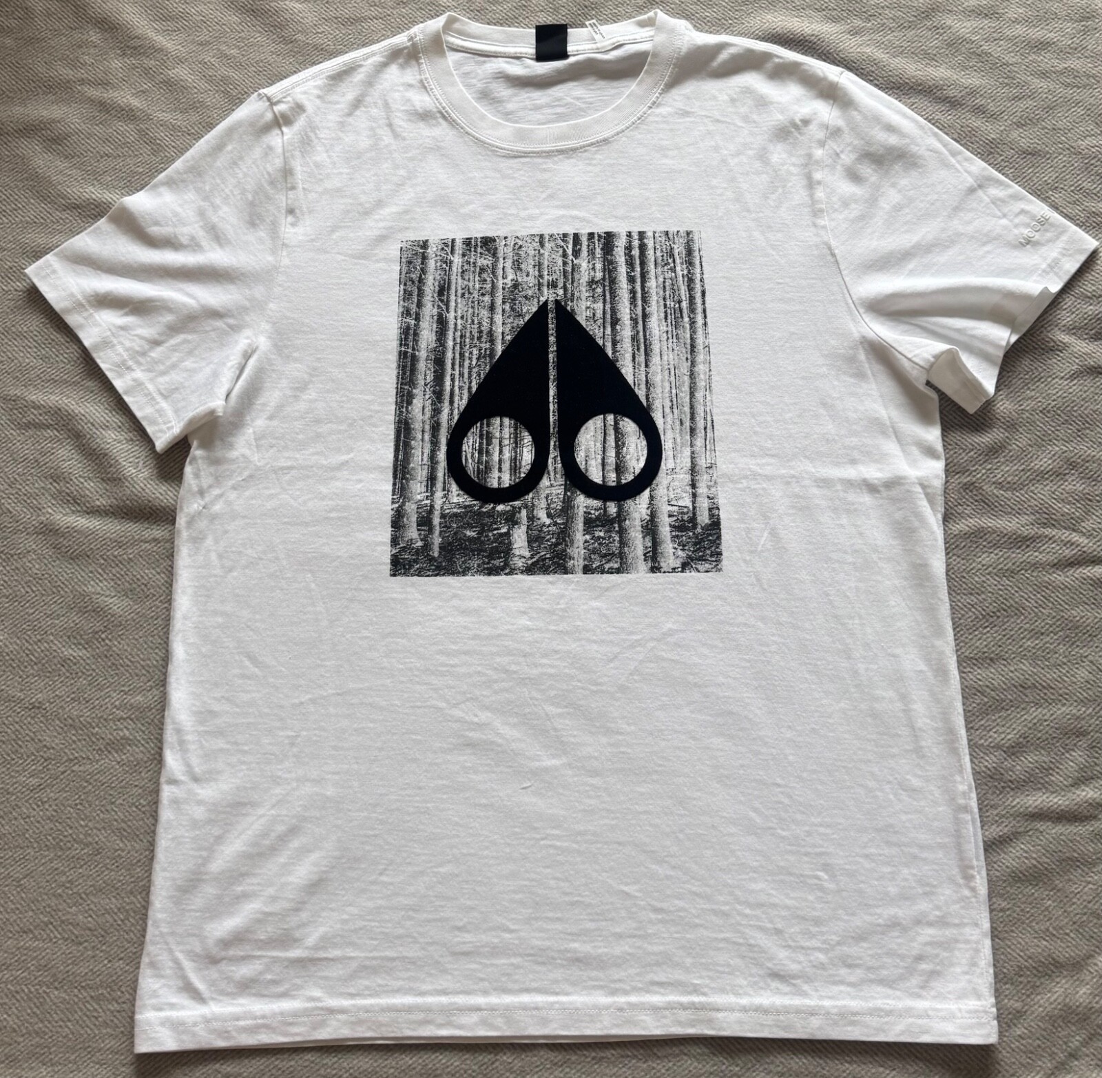 Moose Knuckles Igneous Graphic Logo Cotton T-Shirt White and Black Size M NWOT