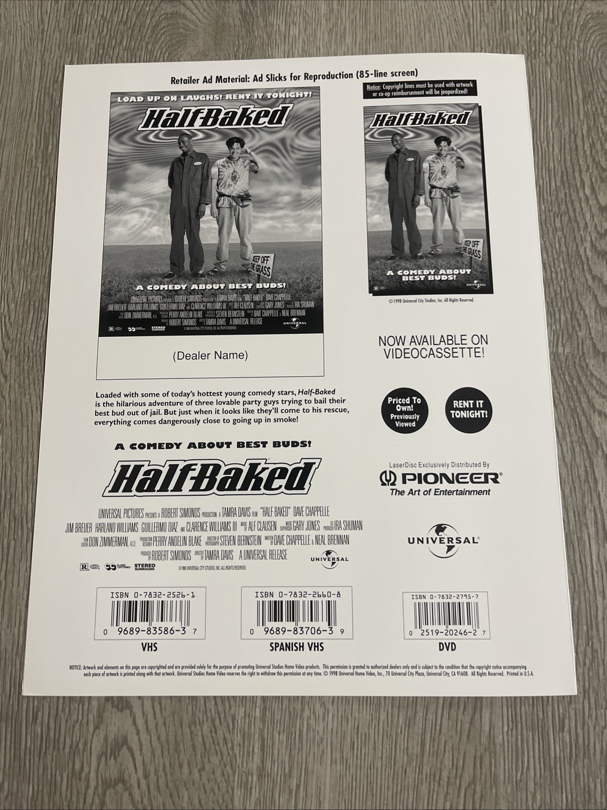 Half Baked Original Press Kit 8.5x11? Video Promo Sheet