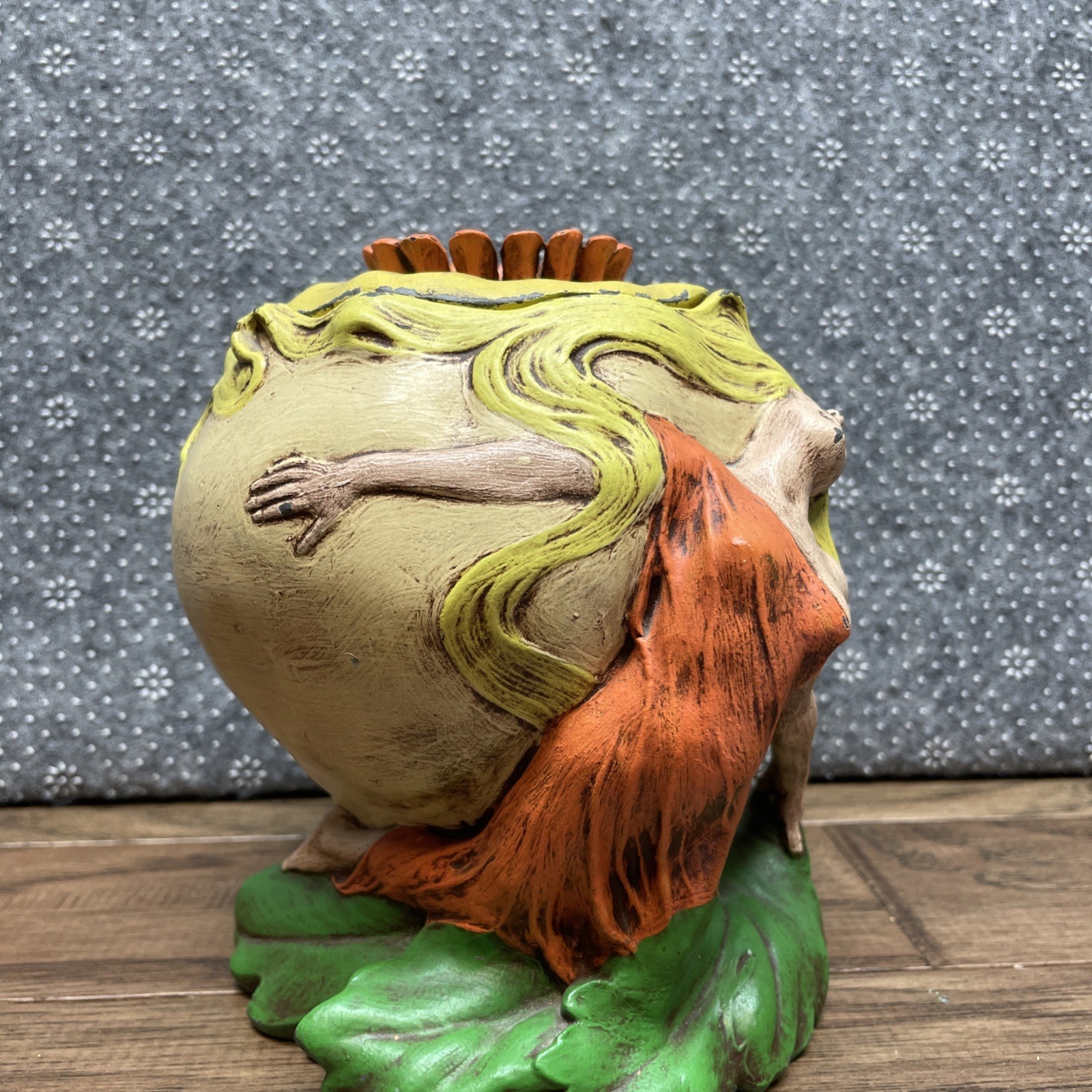 Painted Art Nouveau Brass Container W/lid Woman With Flowing Hair E Jorcher G SH