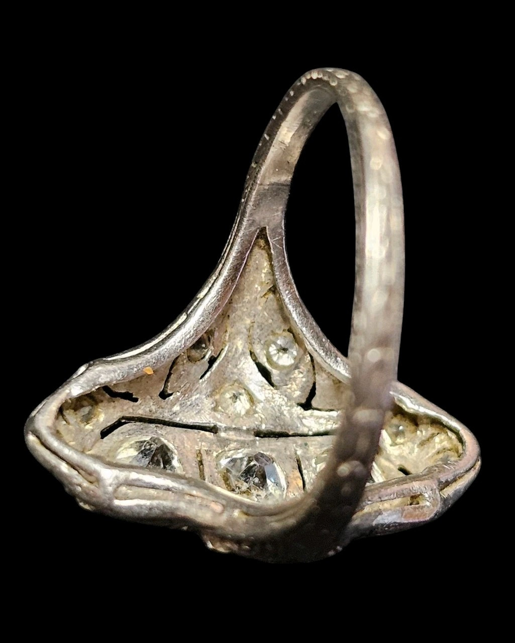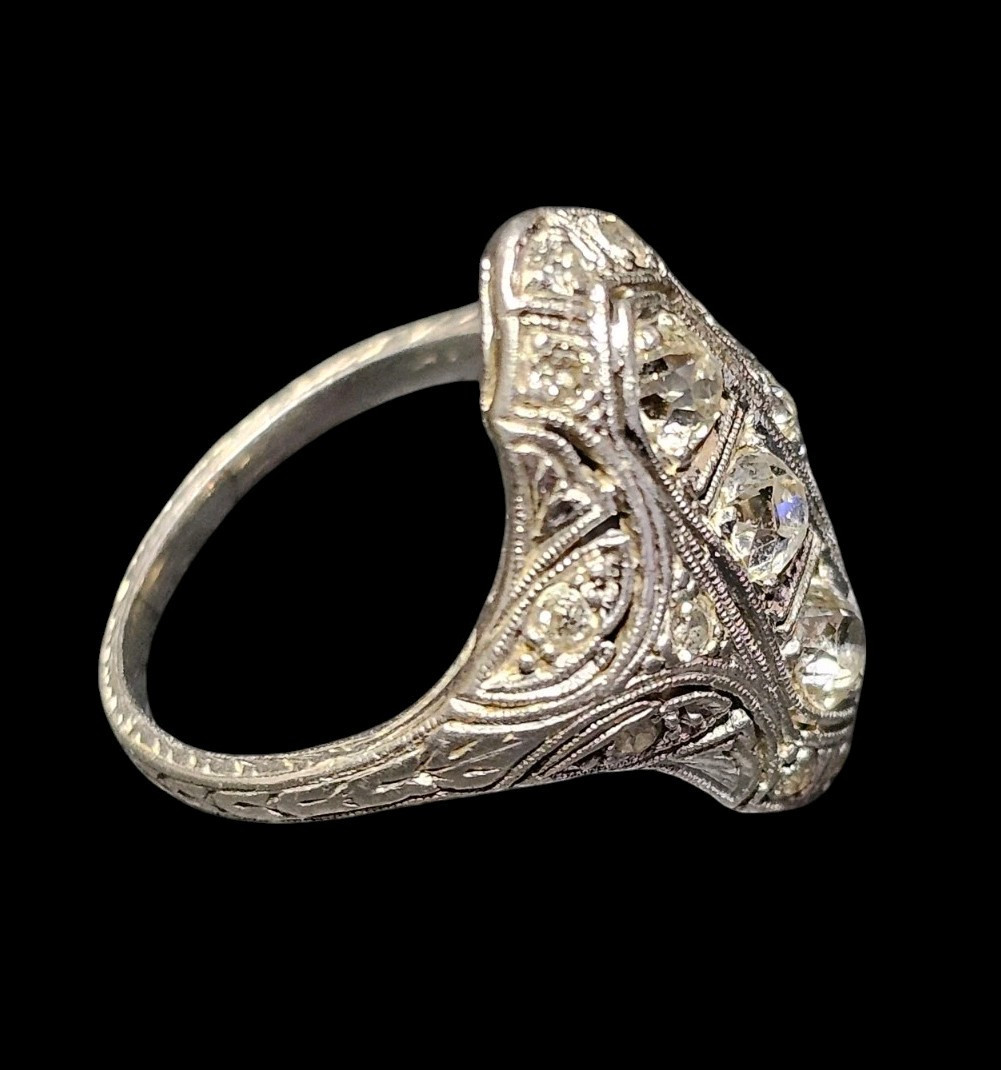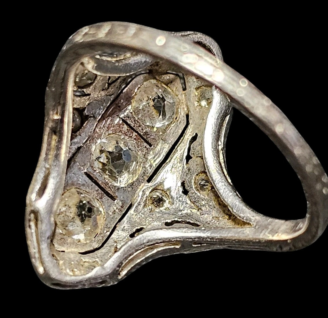 Antique Art Deco Platinum 1.20 TCW Dimond Shield Cocktail Ring 4.84g TW Sz 6.5