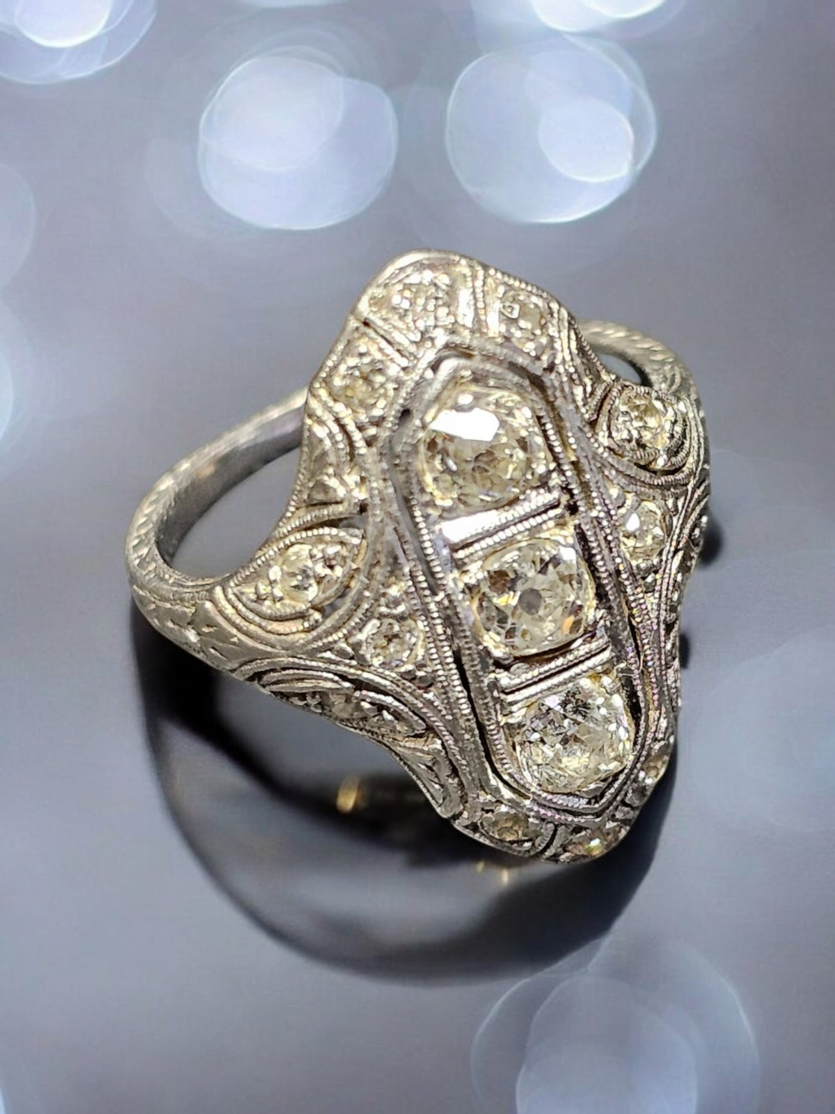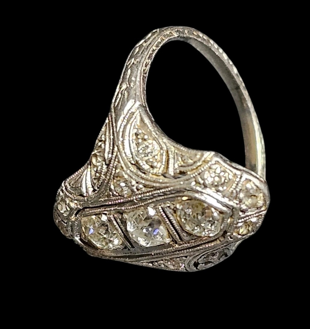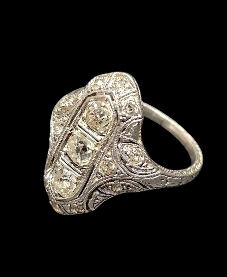 Antique Art Deco Platinum 1.20 TCW Dimond Shield Cocktail Ring 4.84g TW Sz 6.5