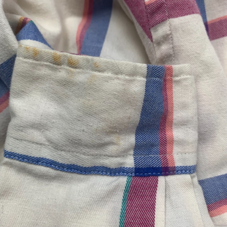Discoloration on cuff of sleeve and some pilling on the collar. Please see photos for details.