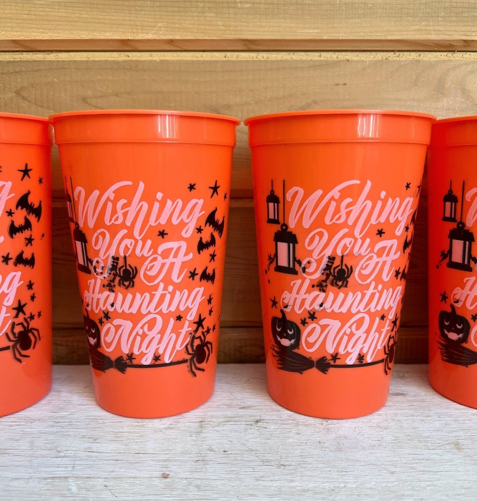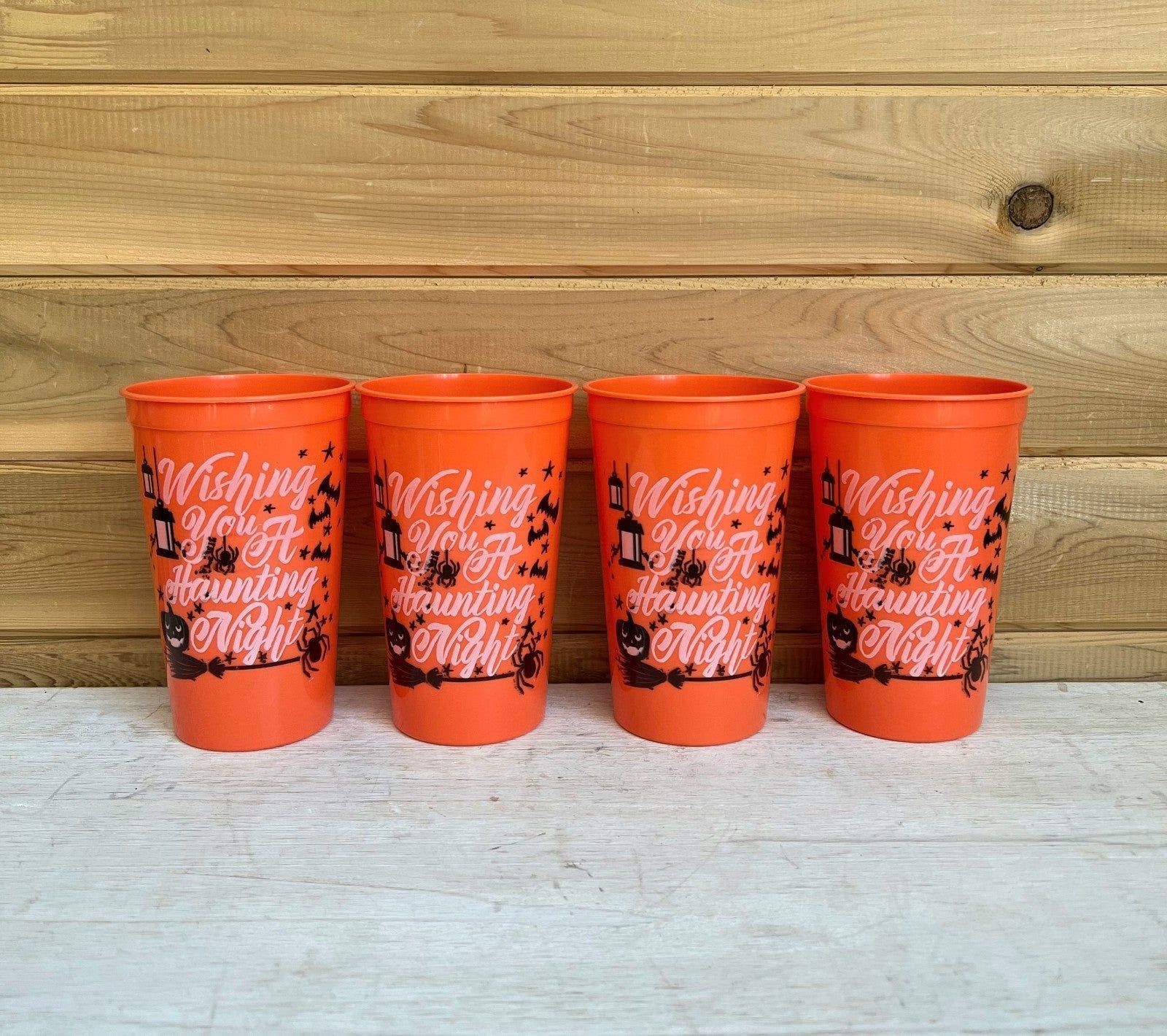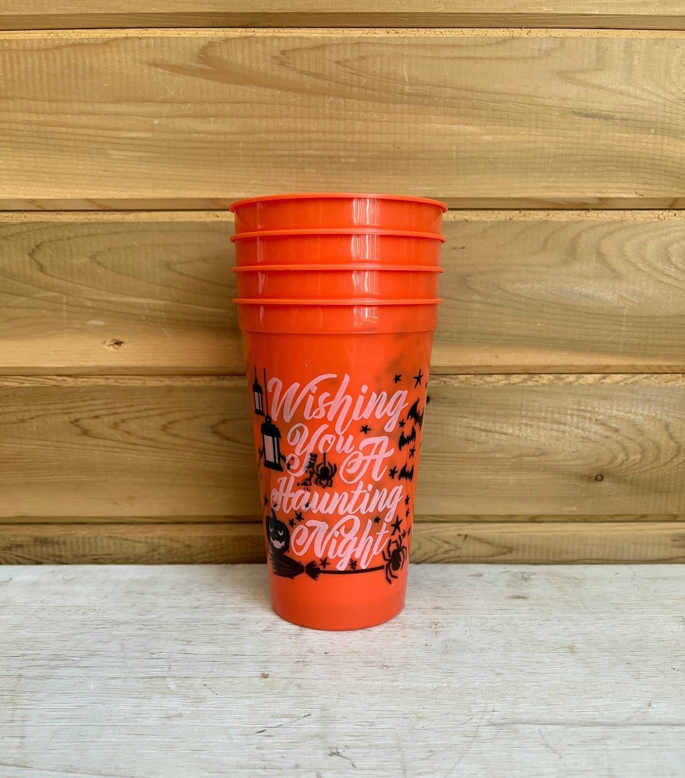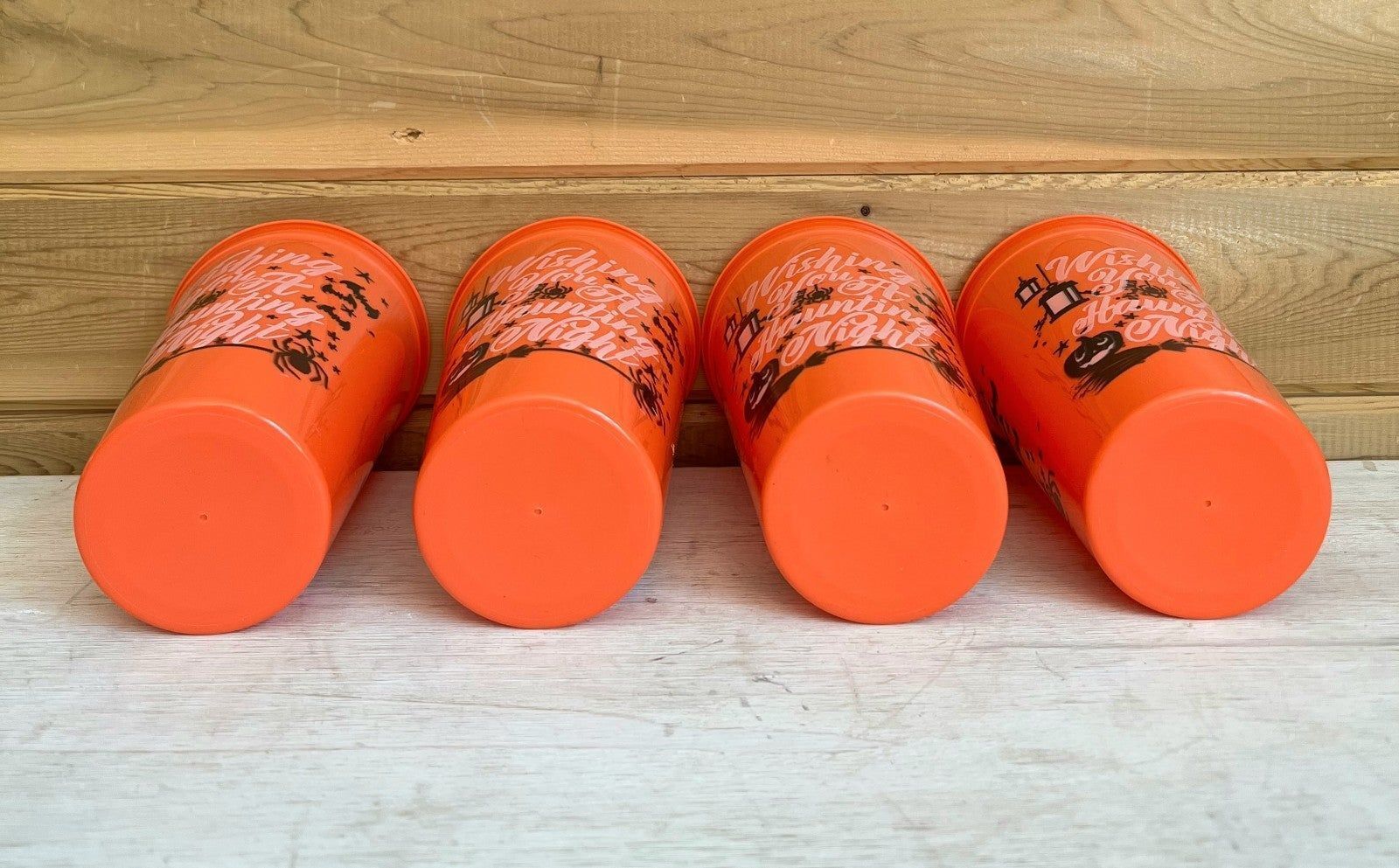 Halloween Orange Plastic Party Cups 12 oz LN Lot of 4