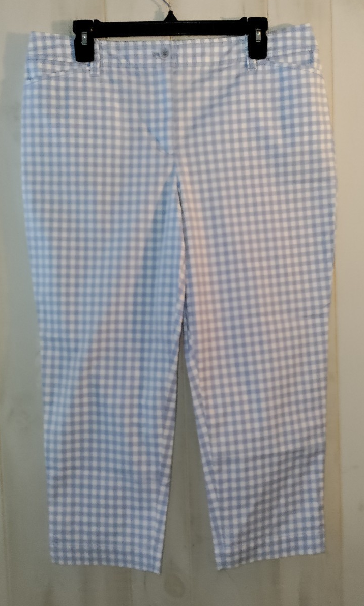 NEW WOMENS TALBOTS "Perfect Crop" BLUE & WHITE CHECK Pant W/ POCKETS SIZE 12P