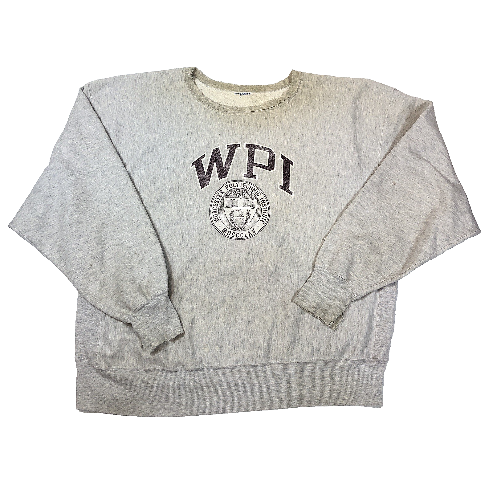 Vintage WPI Worcester Polytechnic Institute Crewneck Heather Gray Distressed Sweatshirt