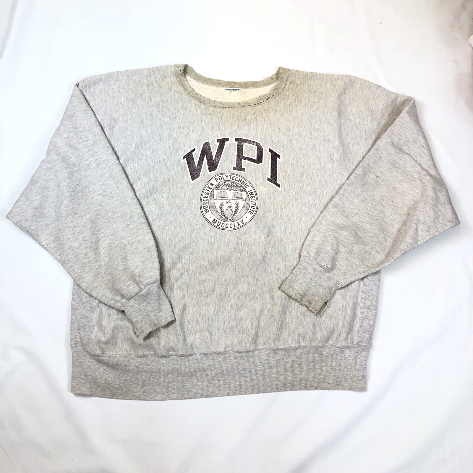 Vintage WPI Worcester Polytechnic Institute Crewneck Distressed Gray Sweatshirt