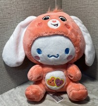 The Sanrio Hello Kitty Care Bears Collector Plush Cinnamonroll Stuff Toy is an approx. 9-inch plush toy featuring the character Cinnamonroll Friend Bear from the Hello Kitty and Care Bears franchises. This single unit plush toy has blue eyes, is made of plush material, and is designed in salmon pink plus embroidered shimmer sparkle multicolors. It is a collector's edition item manufactured in 2023, suitable for all occasions and part of the Animals theme collection. Perfect for fans of Hello Kitty and Care Bears, this unique plush toy is a charming addition to any collector's display.