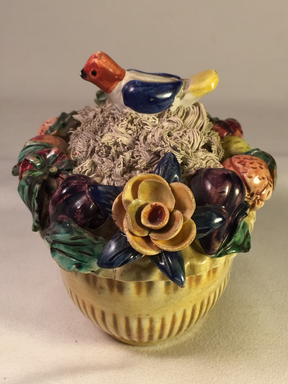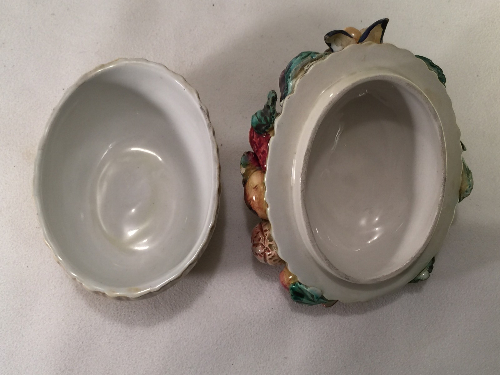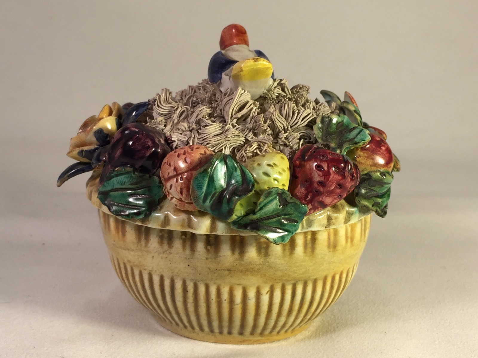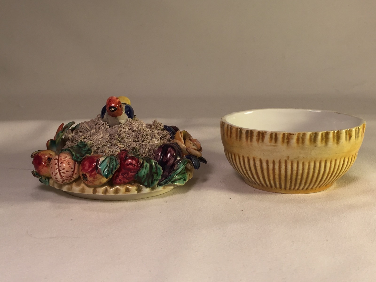 Vintage Capodimonte Floral Fruit Basket Bird Nest Covered Dish Italy Small 5"