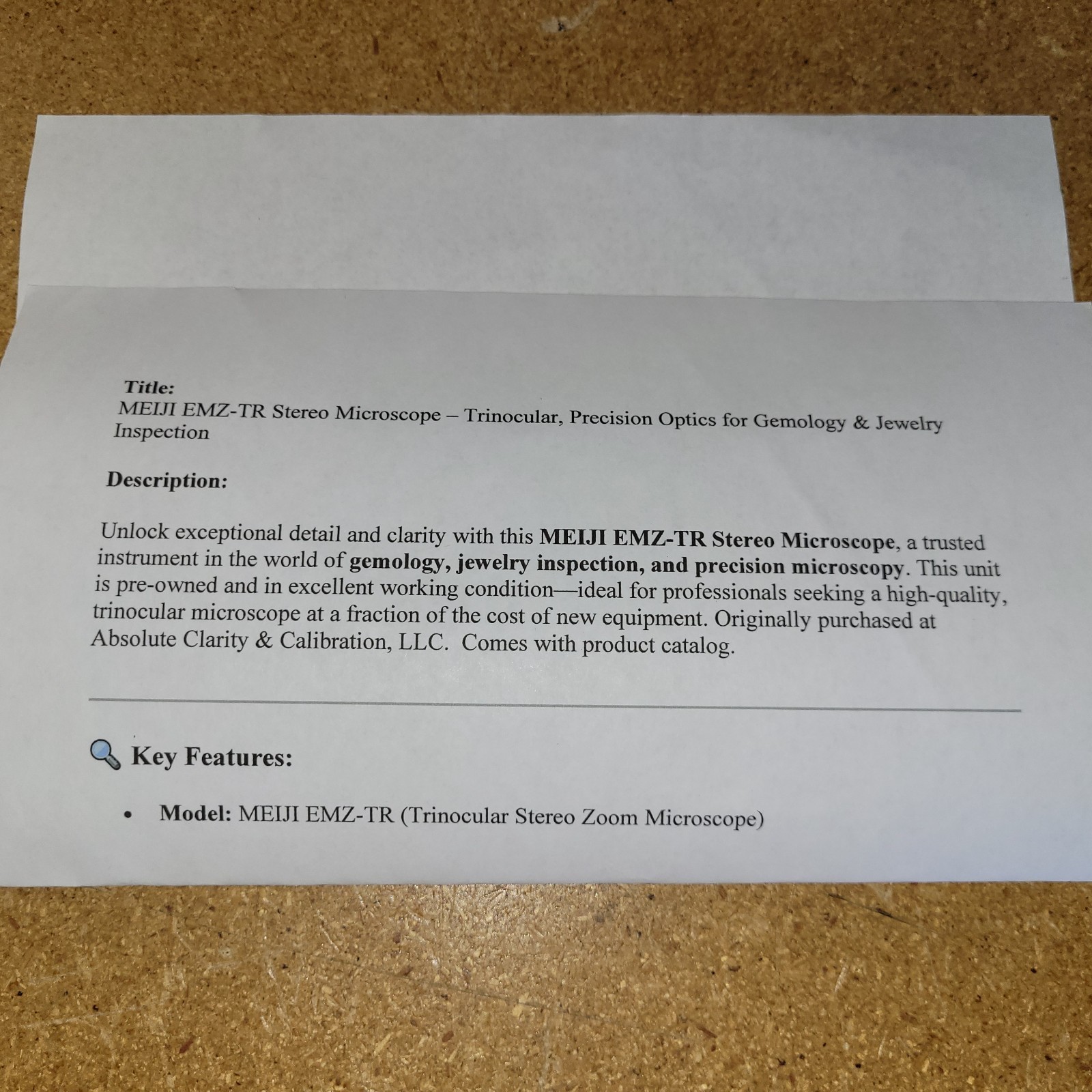 Meiji EMZ-TR Zoom Stereo Microscope and 48 similar items