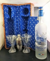 Grey Goose Vodka Basket W Original Contents: Bottle (Empty) Glasses & Shaker OBO