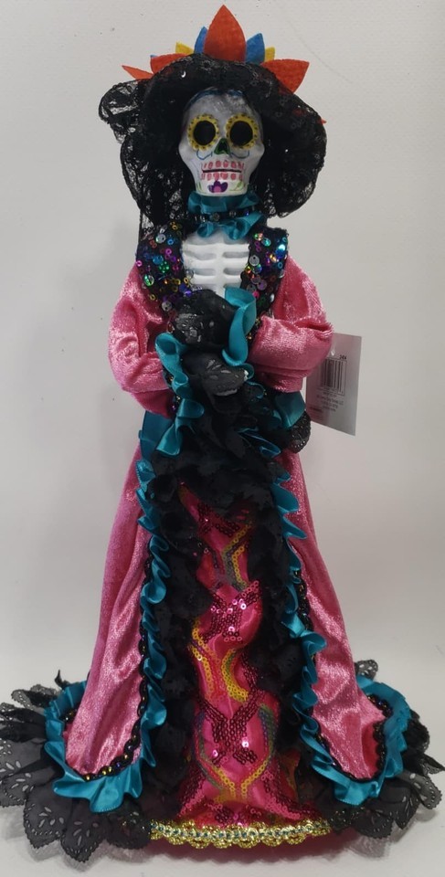 Hola Hallloween Day of the Dead Skeleton Doll w/ Floral Crown Table Décor 16.75"