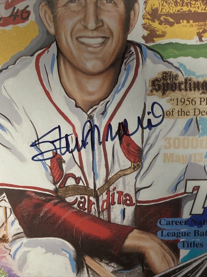 Stan Musial Signed Cardinals Autographed HOF Baseball Art Poster Card Framed