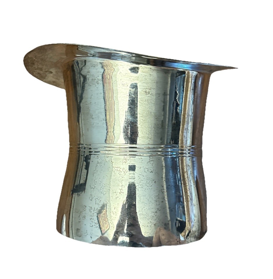 Vintage Silver Plate Brass Top Hat Champagne on Ice Bucket or Decor Piece