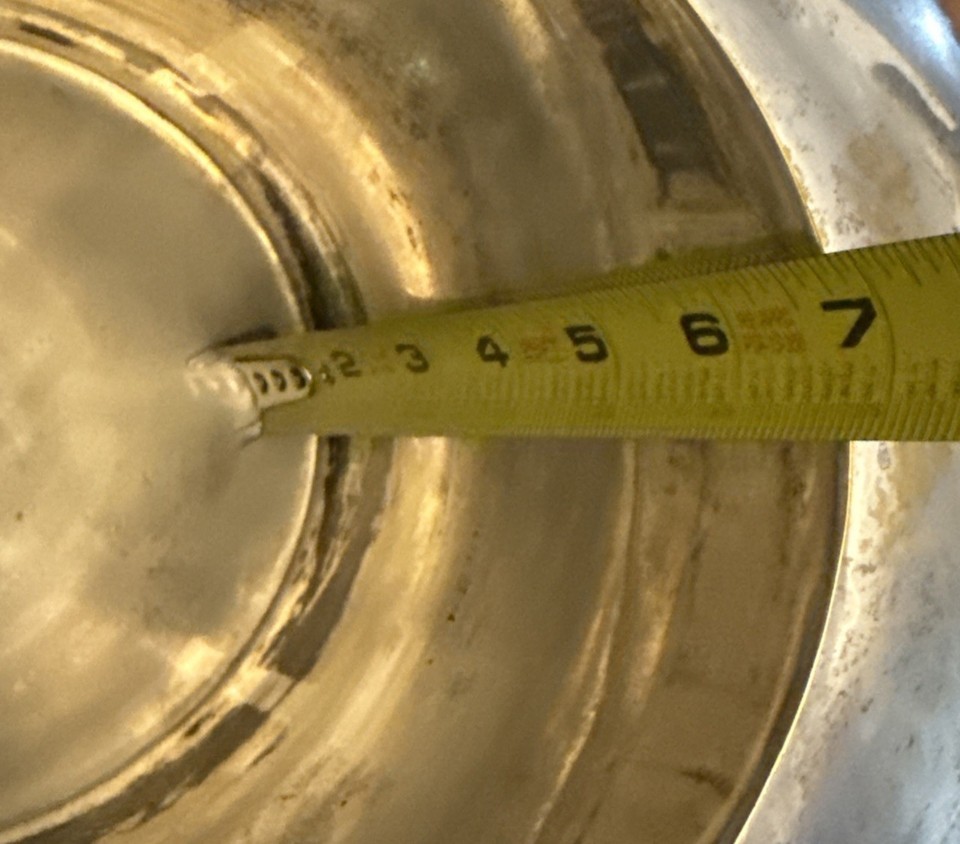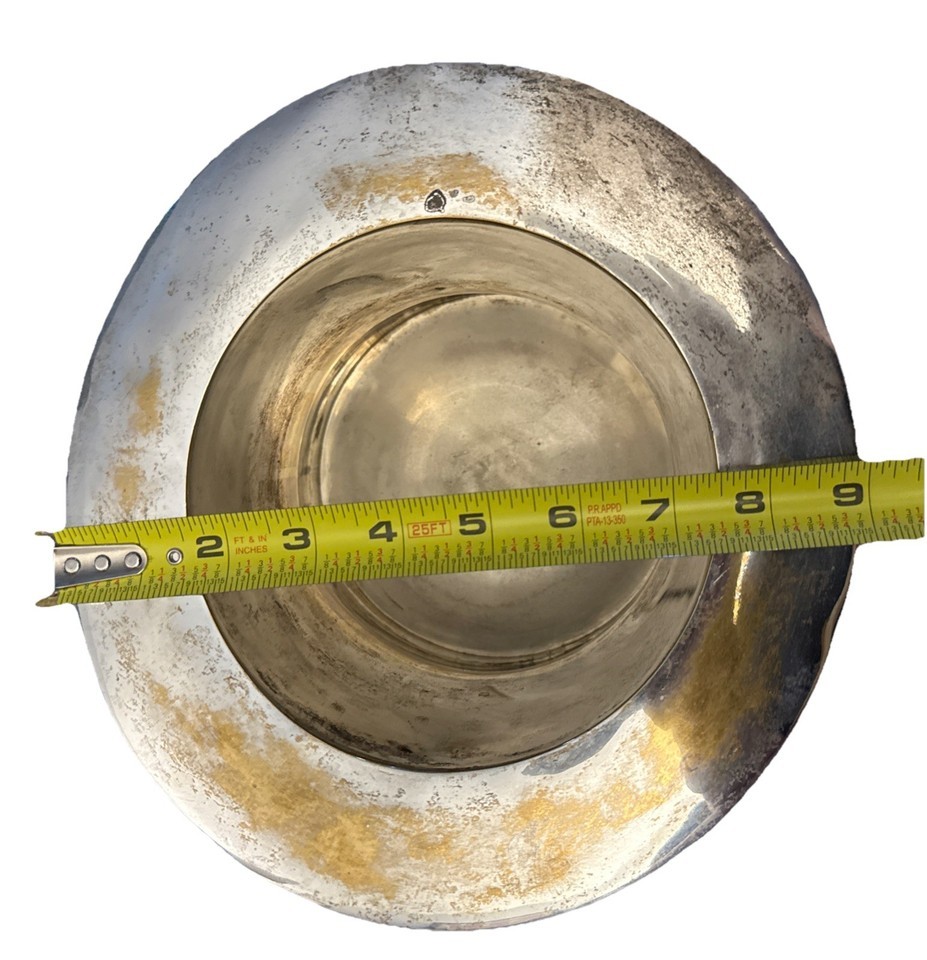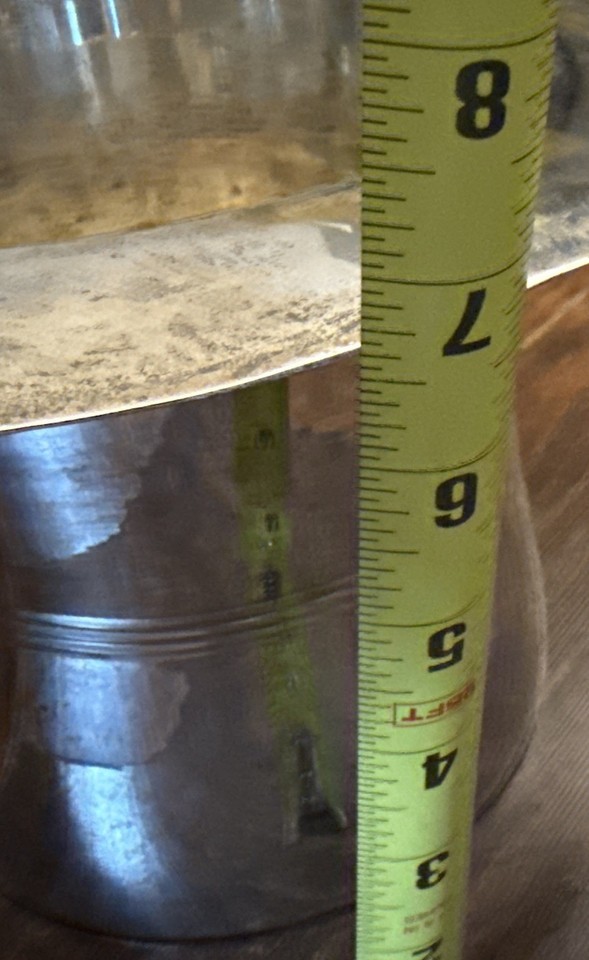 This vintage silver plate top hat champagne ice bucket is not only a functional piece for keeping your drinks cold, but also a stylish decor item for any home bar or dining table. Standing at 9 inches tall with a 6-inch diameter and weighing 4.3 lbs, this art deco style ice bucket is made of brass and silver plate, adding a touch of elegance to your kitchen or bar area. Hand wash only to maintain its beautiful appearance, this unique piece is sure to be a conversation starter in any space.