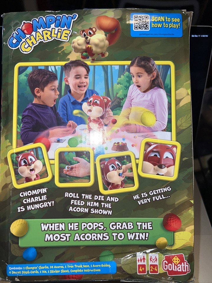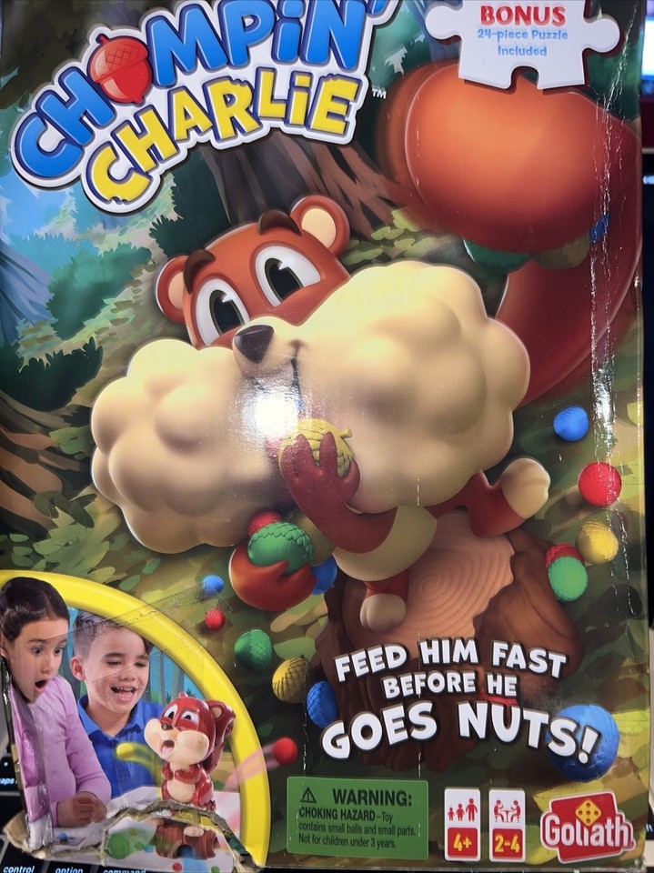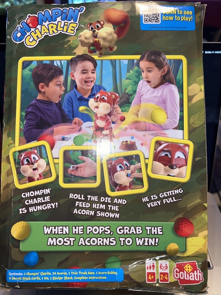 The game is made by Goliath and was manufactured in China in the year 2000. This game is perfect for children of all ages and is guaranteed to provide hours of entertainment. Get ready to have fun collecting acorns with Chompin' Charlie!