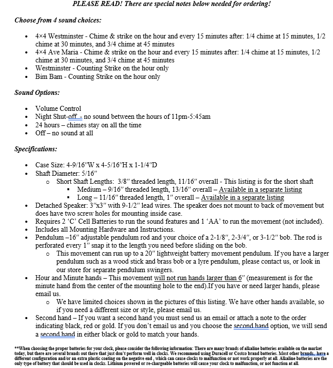 20? lightweight battery movement pendulum. If you have a larger pendulum