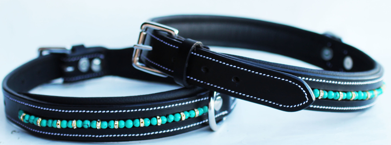 Small Bling Stones Turquoise Dog Puppy Collar Crystal 100% Cow Leather 6021A