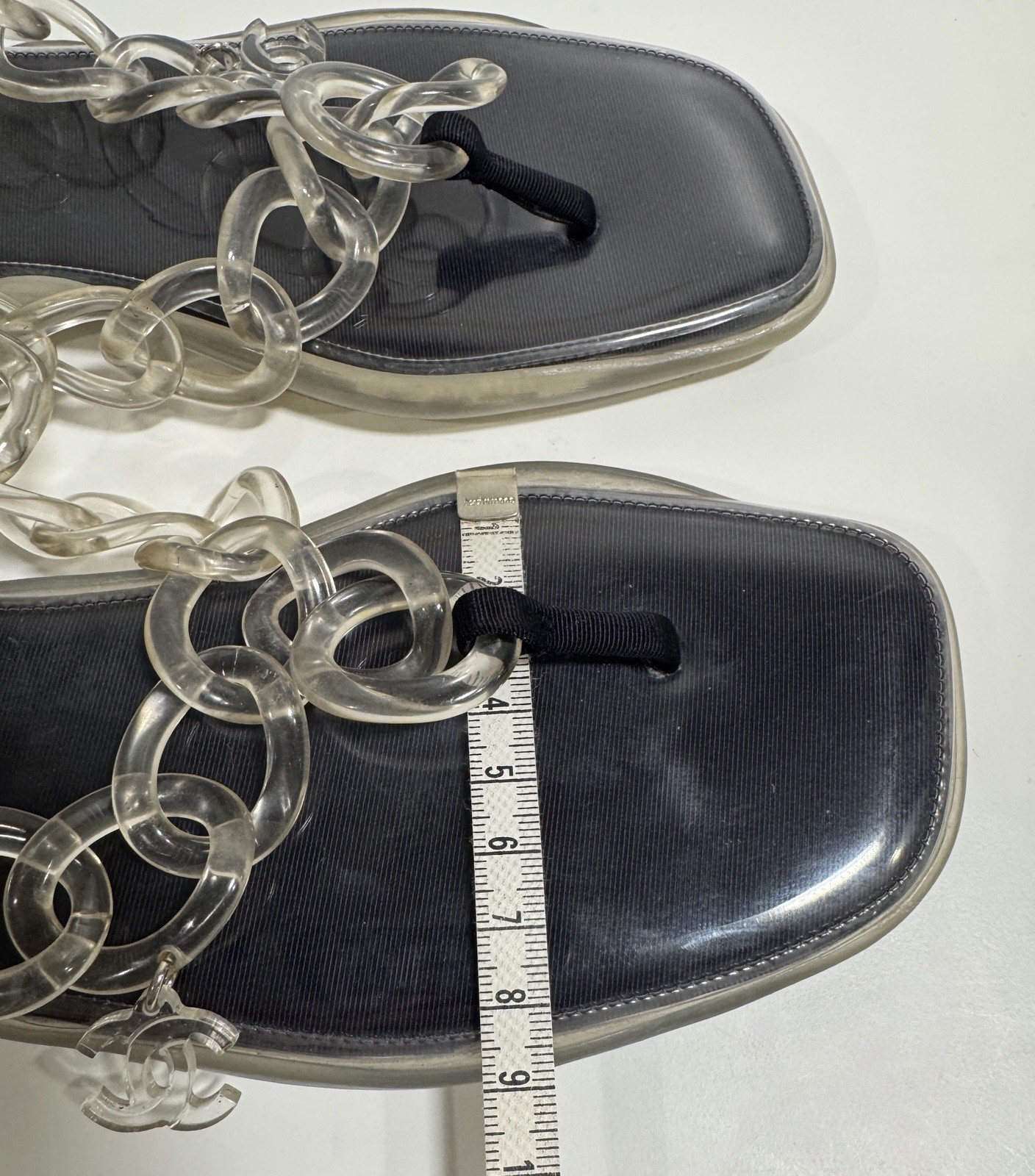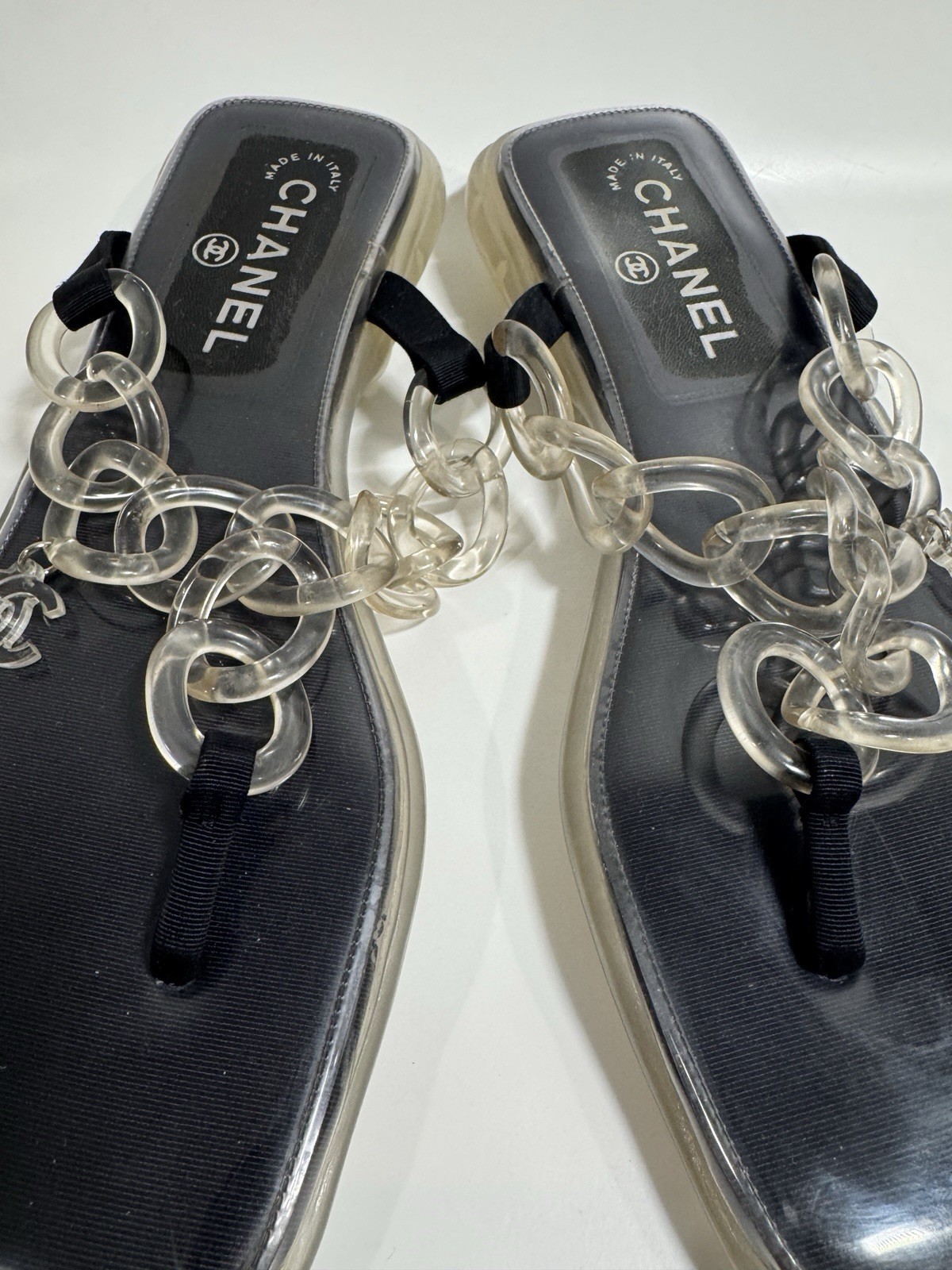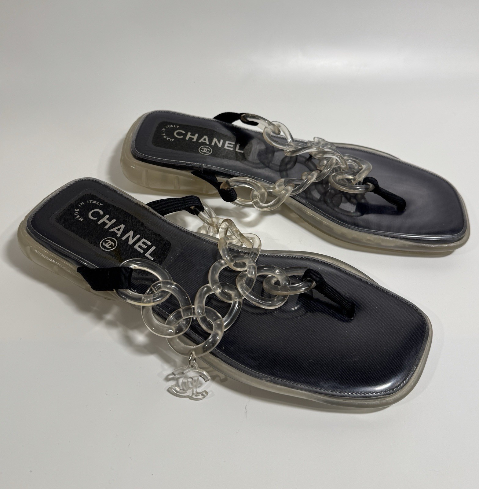Chanel Size 39/ 8 Clear Jelly Sandals CC Chain Flip Flops