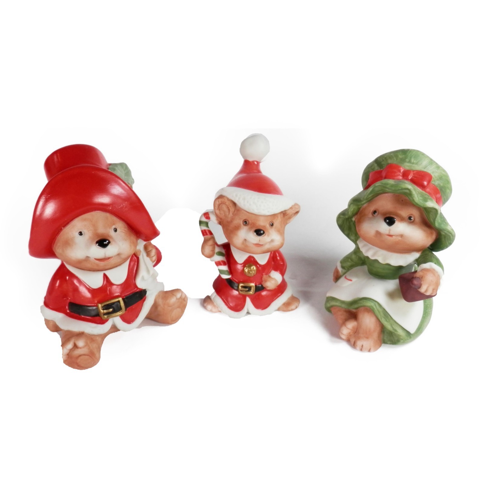 Vtg Homco Holiday Bear Figurines Santa Ms Calus & Elf Christmas Decor 4"