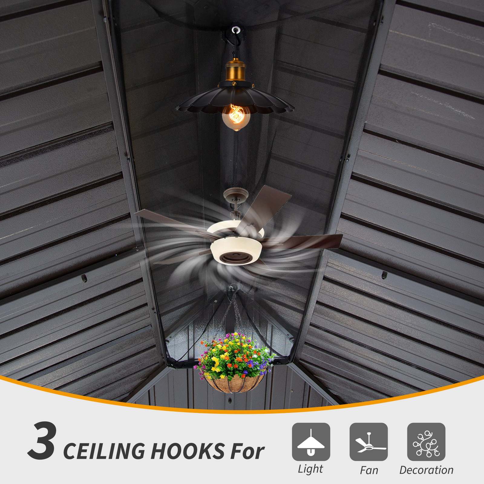[Versatile Hook Options for Personalization] With 3 versatile hooks, each holding up to 20 lbs, you can easily add lights, fans, or decorations to create a personalized outdoor oasis. Perfect for entertaining or adding ambiance, these hooks enhance your outdoor living experience.