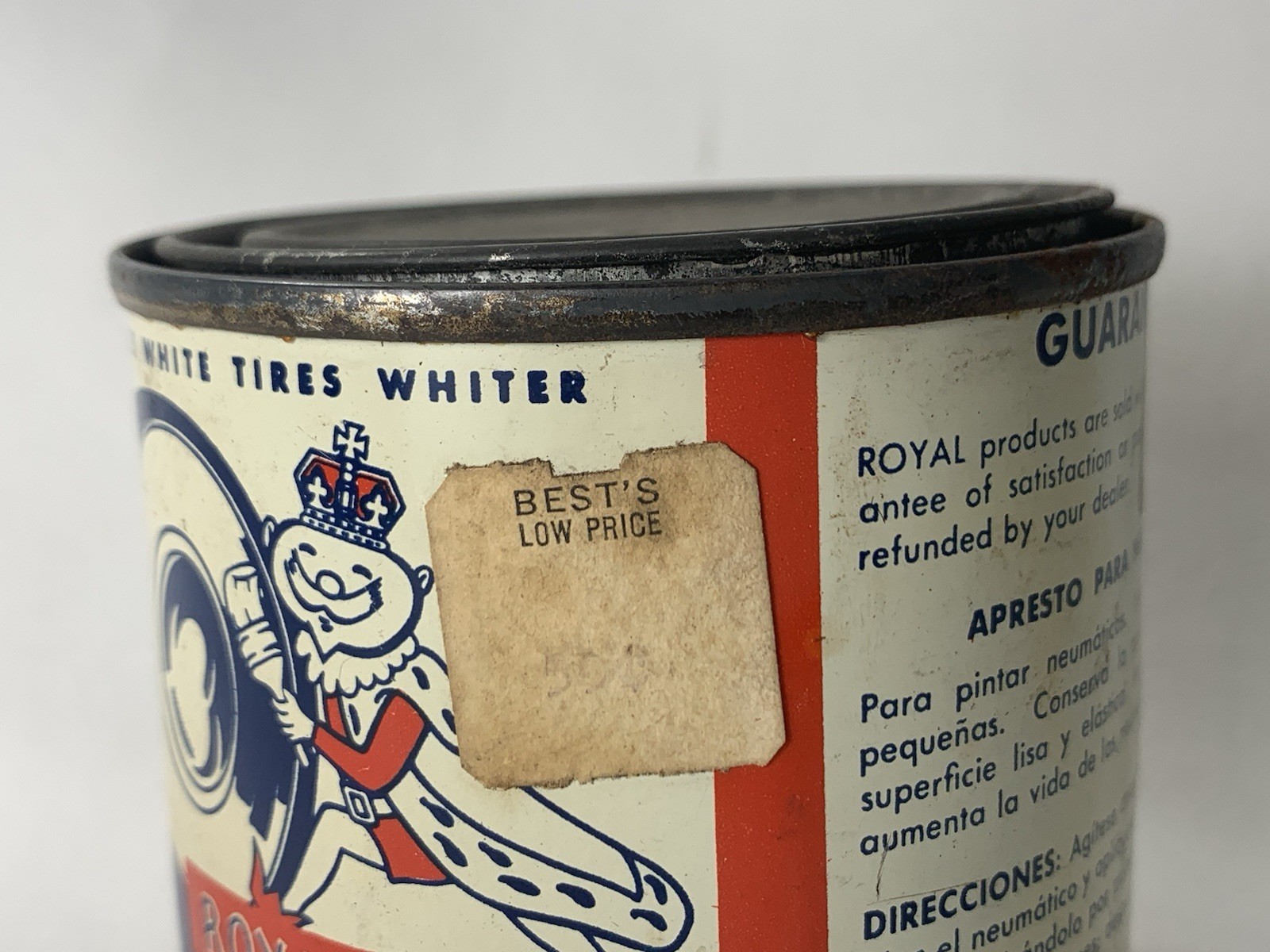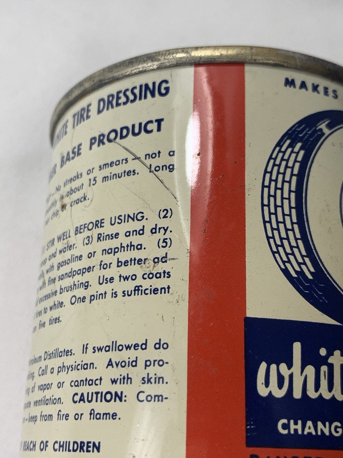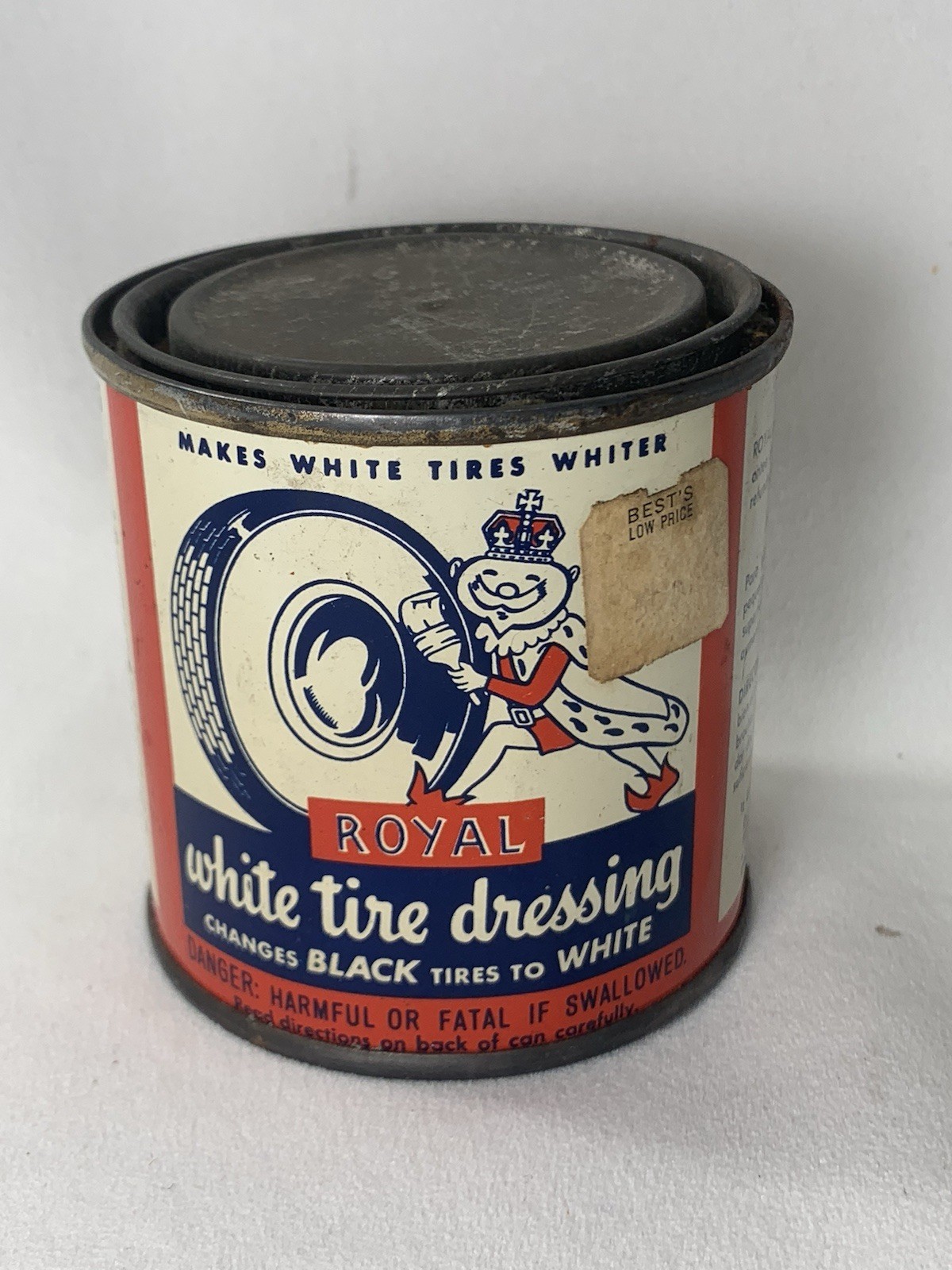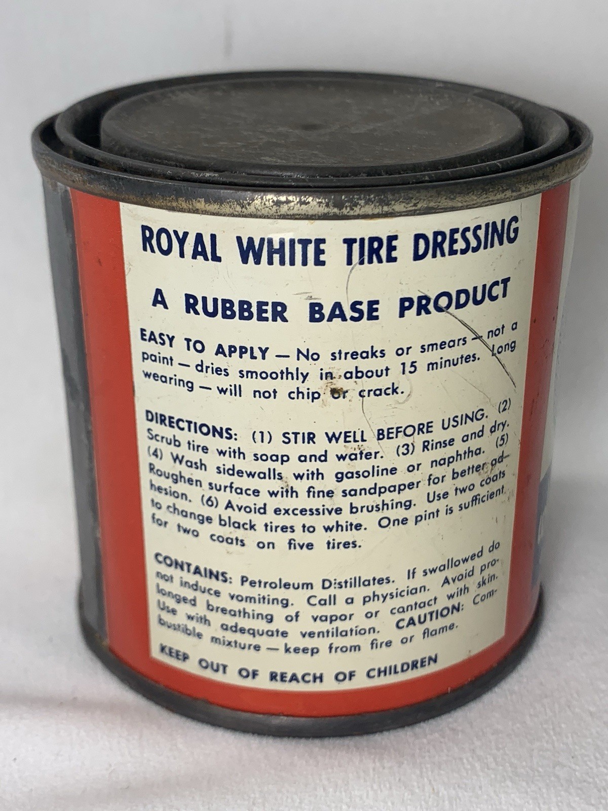 ROYAL White Tire Dressing Can 1/2 Pint Can Rare "Changes BLACK tires to WHITE"