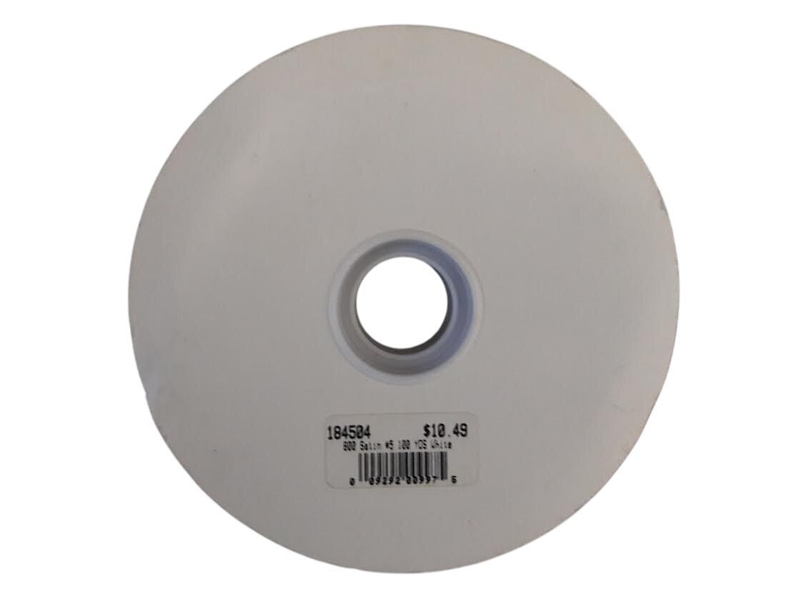 100 Yards C G Pattern 800 Acetate Satin Fused Edge Ribbon #5 White. It is 1 inch wide and features a solid pattern. This ribbon is water repellent and is perfect for various crafting projects. Made in the United States, this high-quality ribbon is versatile and can be used in a wide range of creative endeavors. Vintage from 1970's