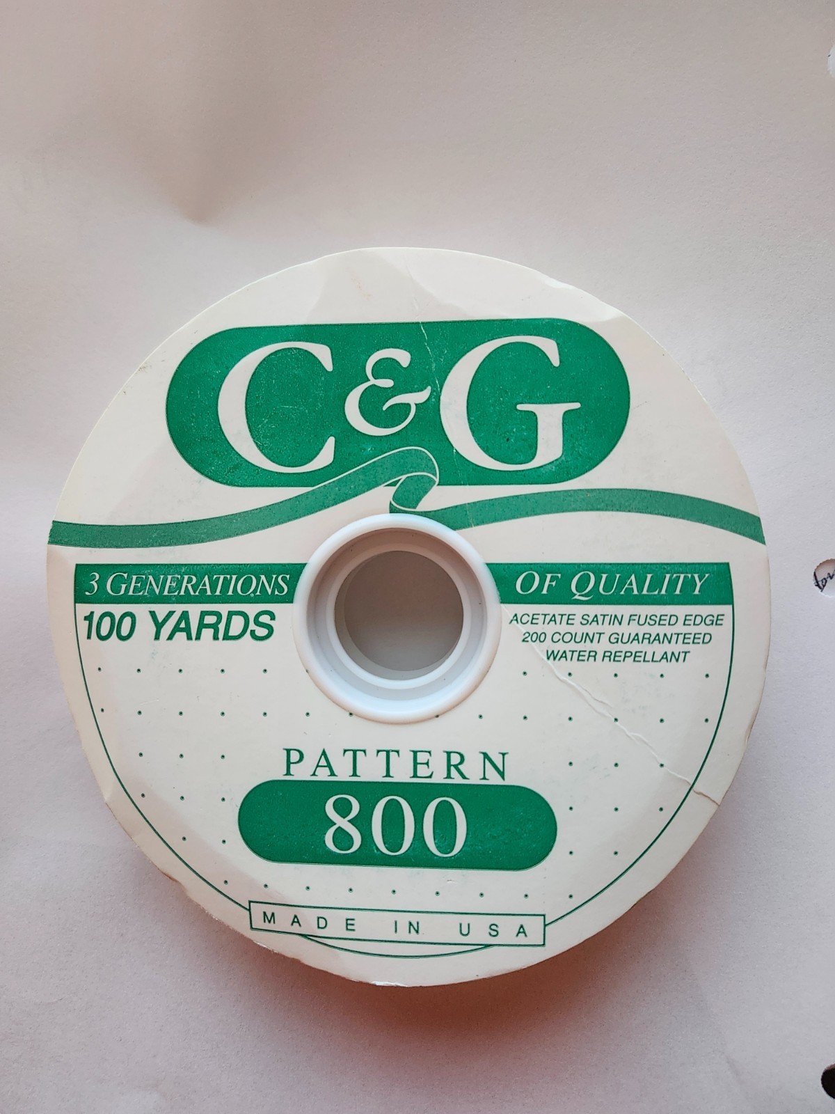 C & G Pattern 800 Ribbon #5 100 Yards Acetate Satin Fused Edge USA