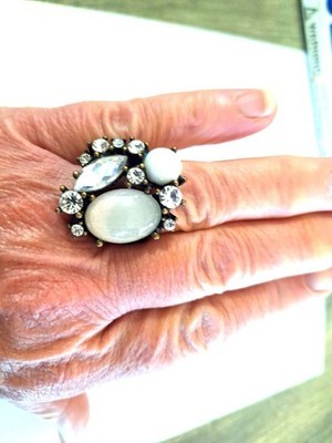 Moonstone Cabochon & Jeweled Rhinestone Ring and similar items