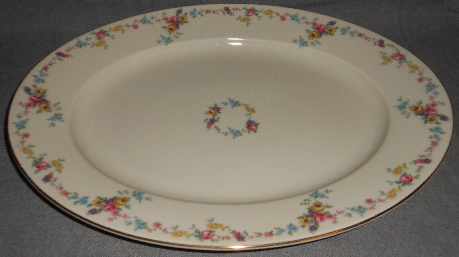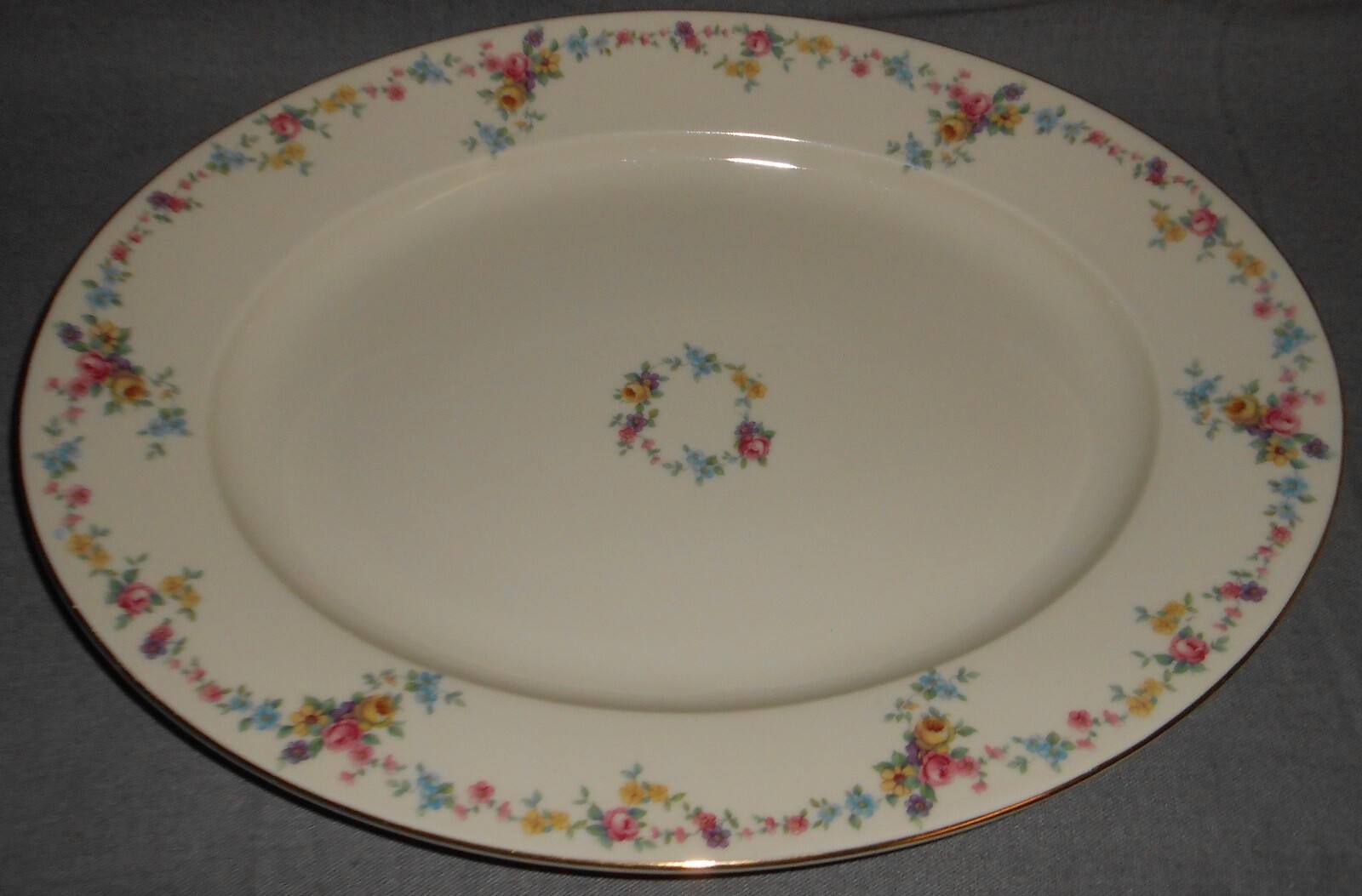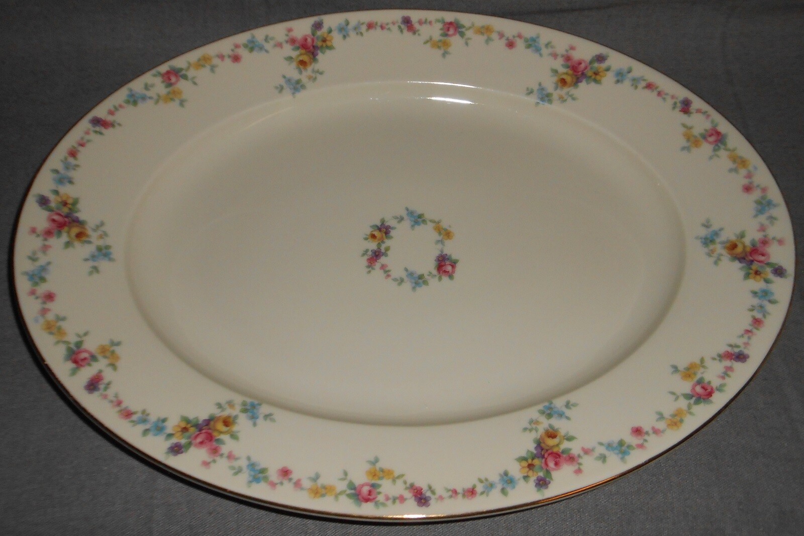 This is the 15 1/4" Oval Serving Platter from Baronet in the Vernona Pattern and also marked Czechoslovakia and Made in Bohemia. It is in good pre-owned condition with no chips or cracks - some minor, light gold wear in a just few spots on exterior rim.