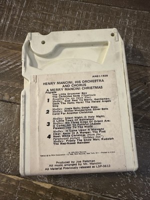 The product is an 8-track tape featuring music by artist Henry Mancini, titled "Merry Mancini Christmas." This nostalgic format allows listeners to enjoy Christmas music in a unique and retro way, perfect for adding a classic touch to the holiday season. With the convenience of an 8-track cartridge, this tape is a fun and unique addition to any music collection for fans of Mancini's music or vintage Christmas recordings.