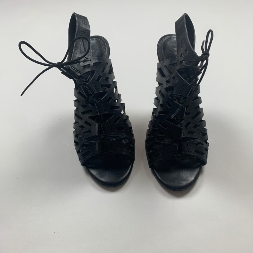 Pour La Victoire Black Strappy High Heel Sandals 8.5 Tie Laces Stiletto
