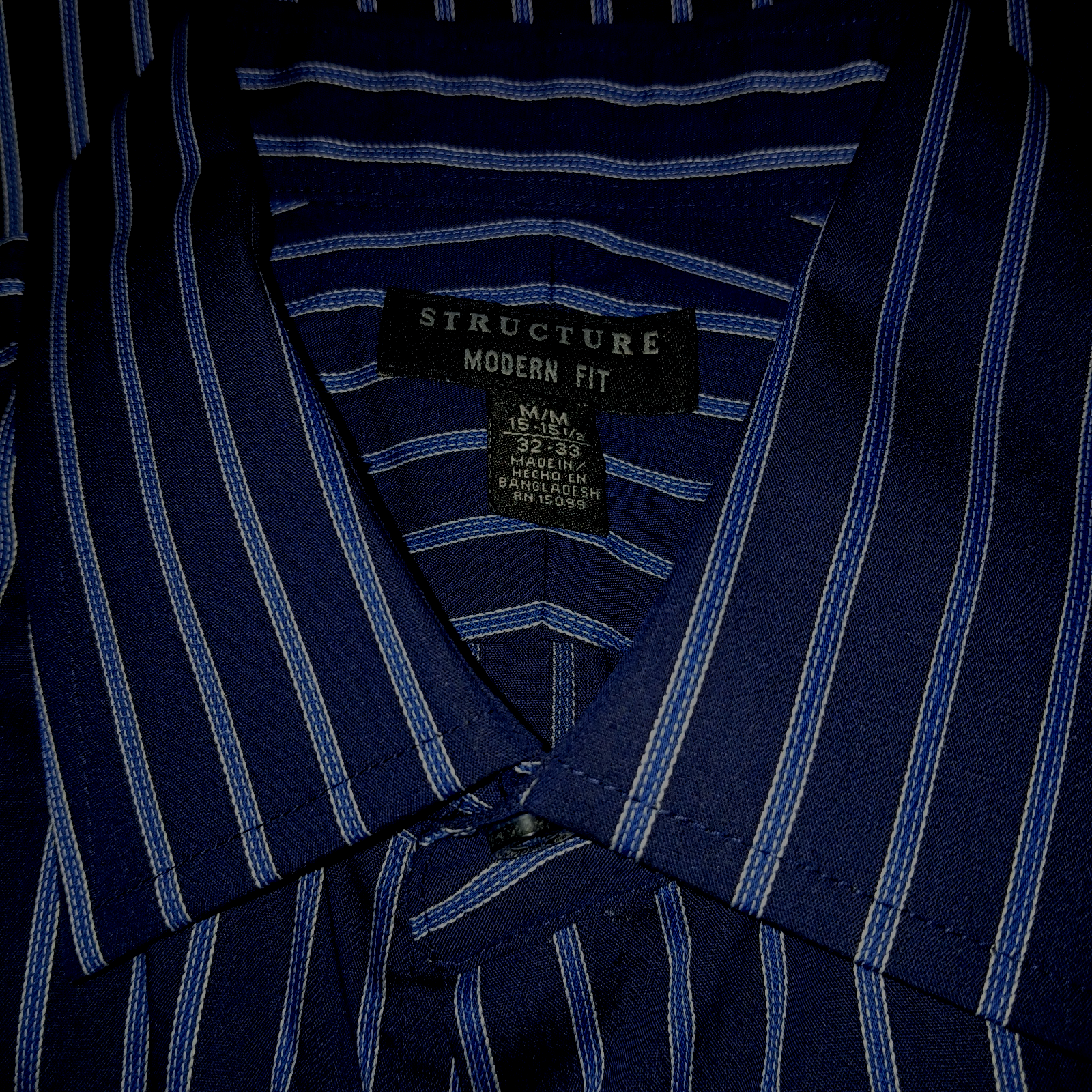 THIS IS A GREAT MEN'S STRUCTURE BLACK/WHITE STRIPED LONG-SLEEVED COTTON/POLYESTER BUTTON-DOWN SHIRT IN A SIZE M(15/15.5 x 32/33). IT IS NEW, WITHOUT THE TAGS.