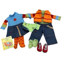 This set includes colorful sweaters, pants, skirts, and accessories like socks and shoes, designed for Bitty Baby Twins.