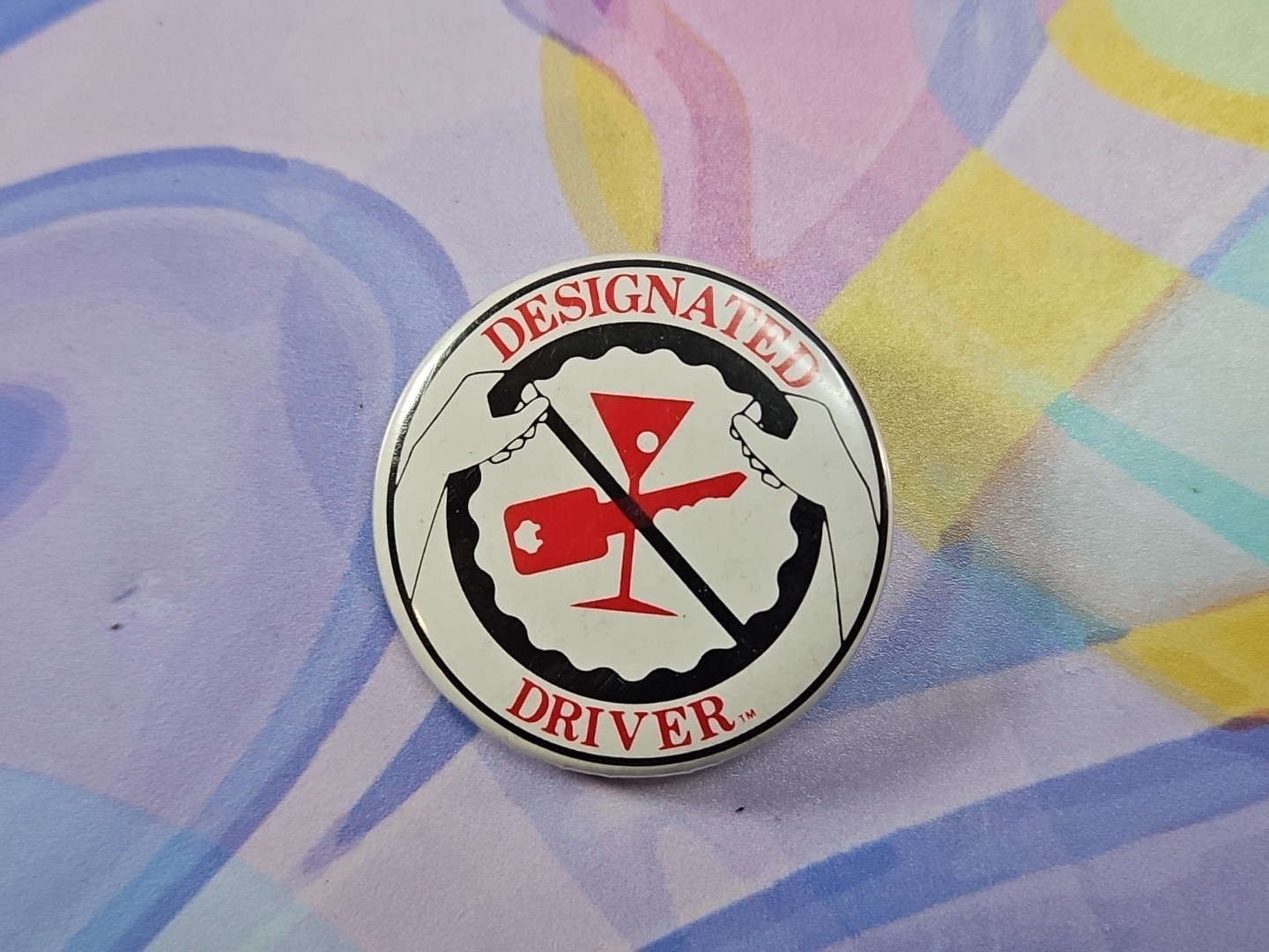 Vintage Designated Driver Button Pin Pinback, 1980s White, 1.5''