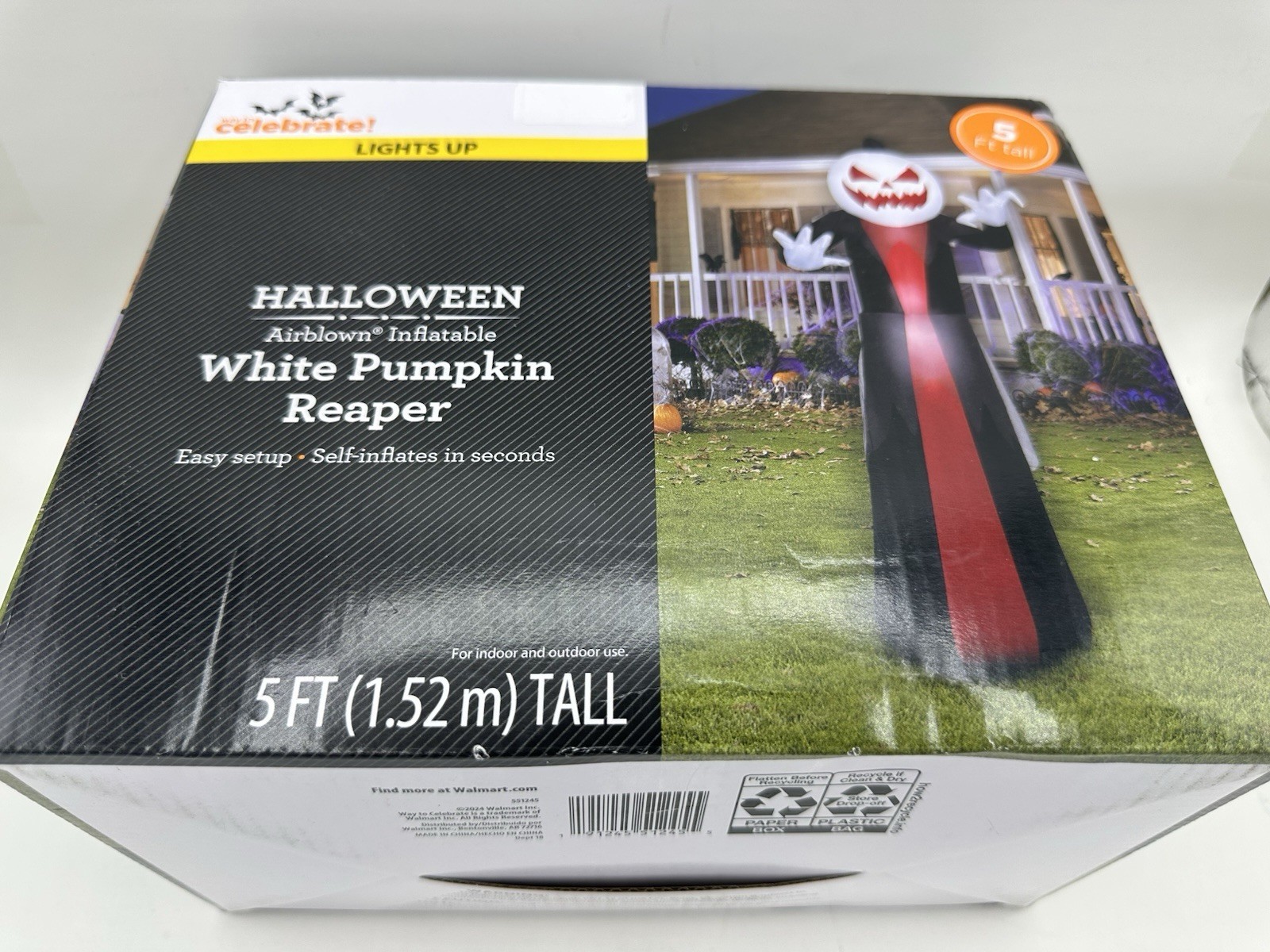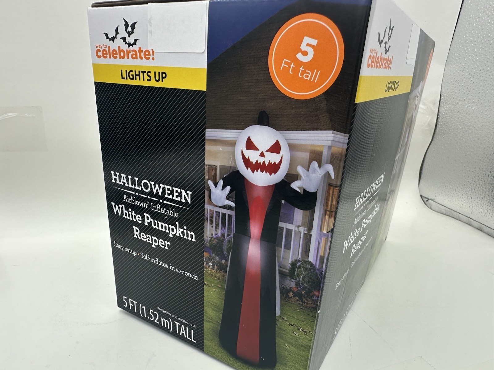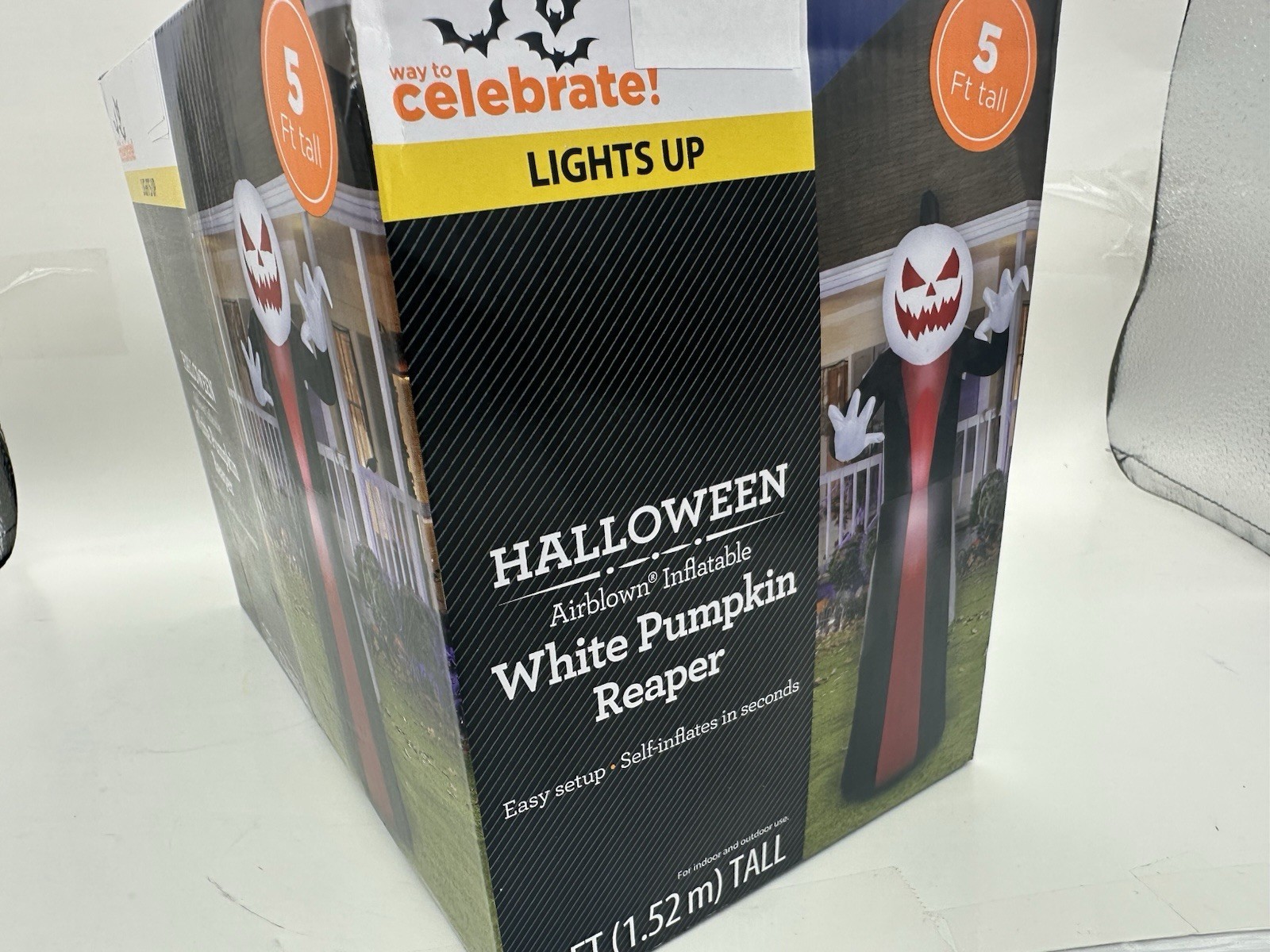 Halloween Air Blow-Up Inflatable 5 FOOT Tall WHITE PUMPKIN REAPER Airblown Light