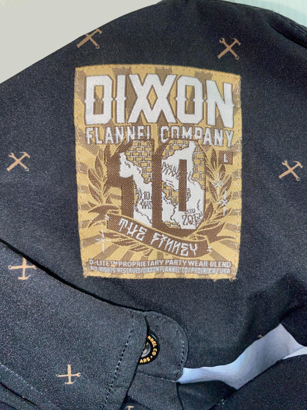 Mens Dixxon Finney L Short Sleeve Button Down Shirt Black Hammer Wrench Pattern