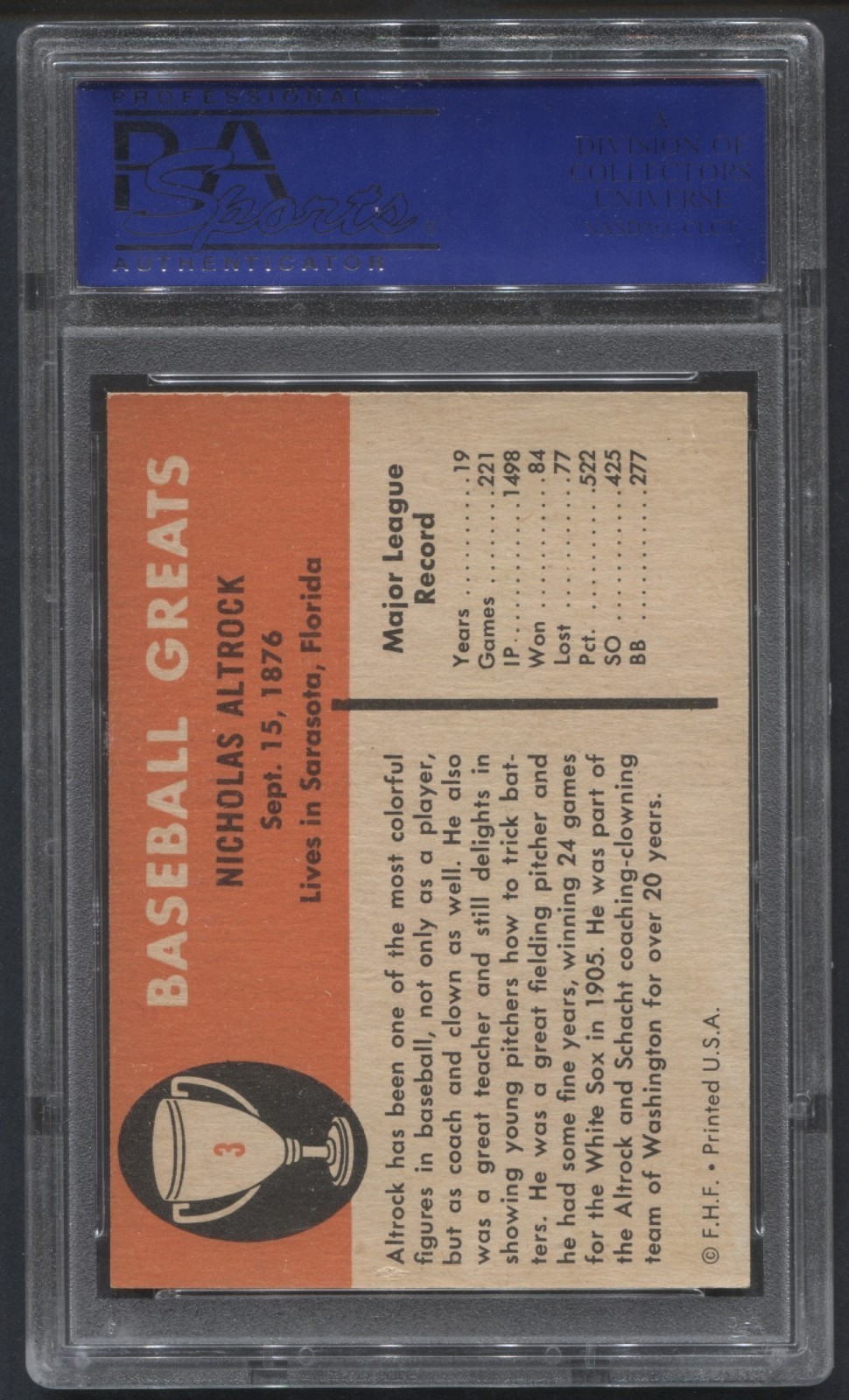 1961 FLEER NICK ALTROCK #3 WASHINGTON SENATORS CHICAGO BOSTON NEAR MINT NM PSA 7
