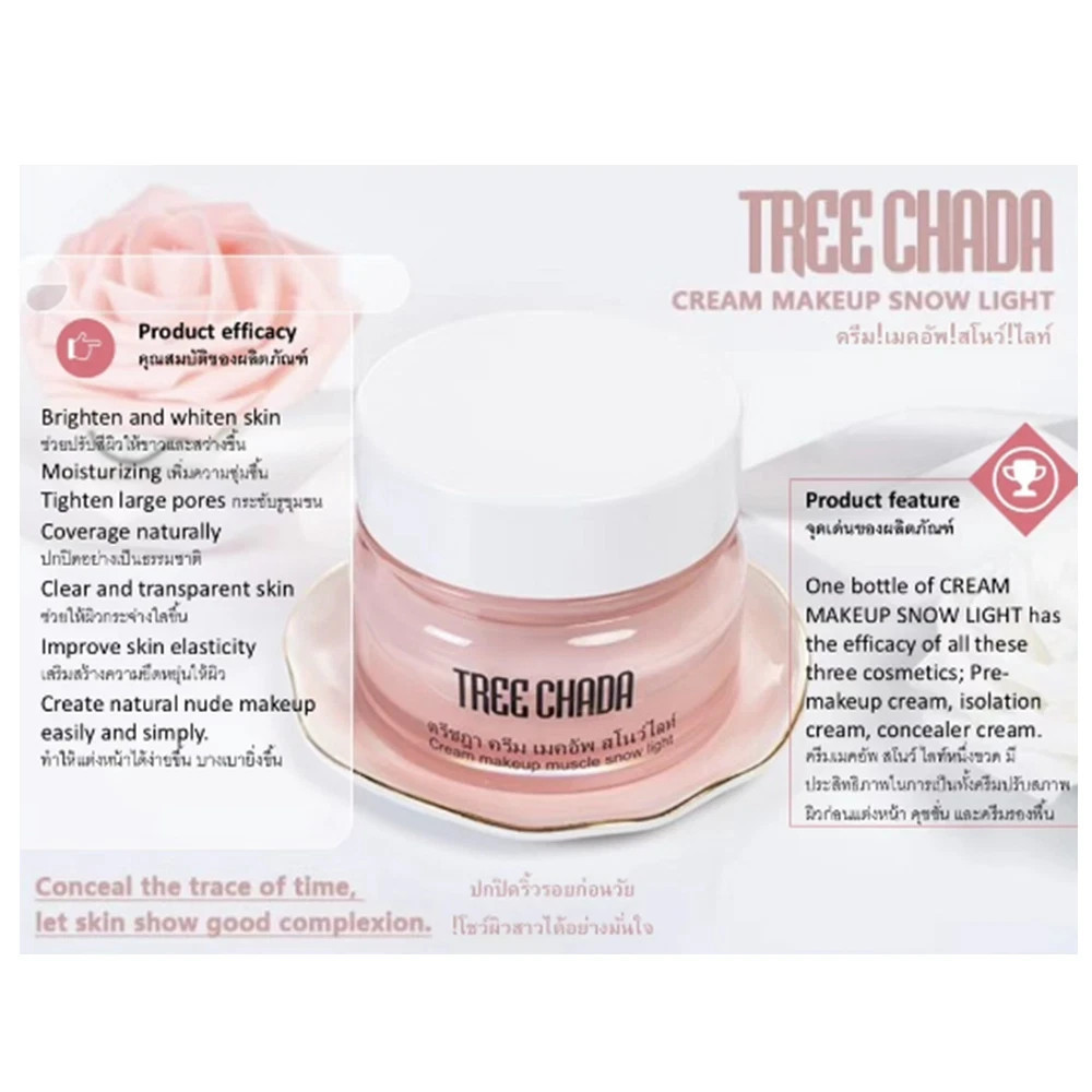 3 x 50ml Cream Makeup TREECHADA Muscle Snow Light Brighten Soft Skin Care .