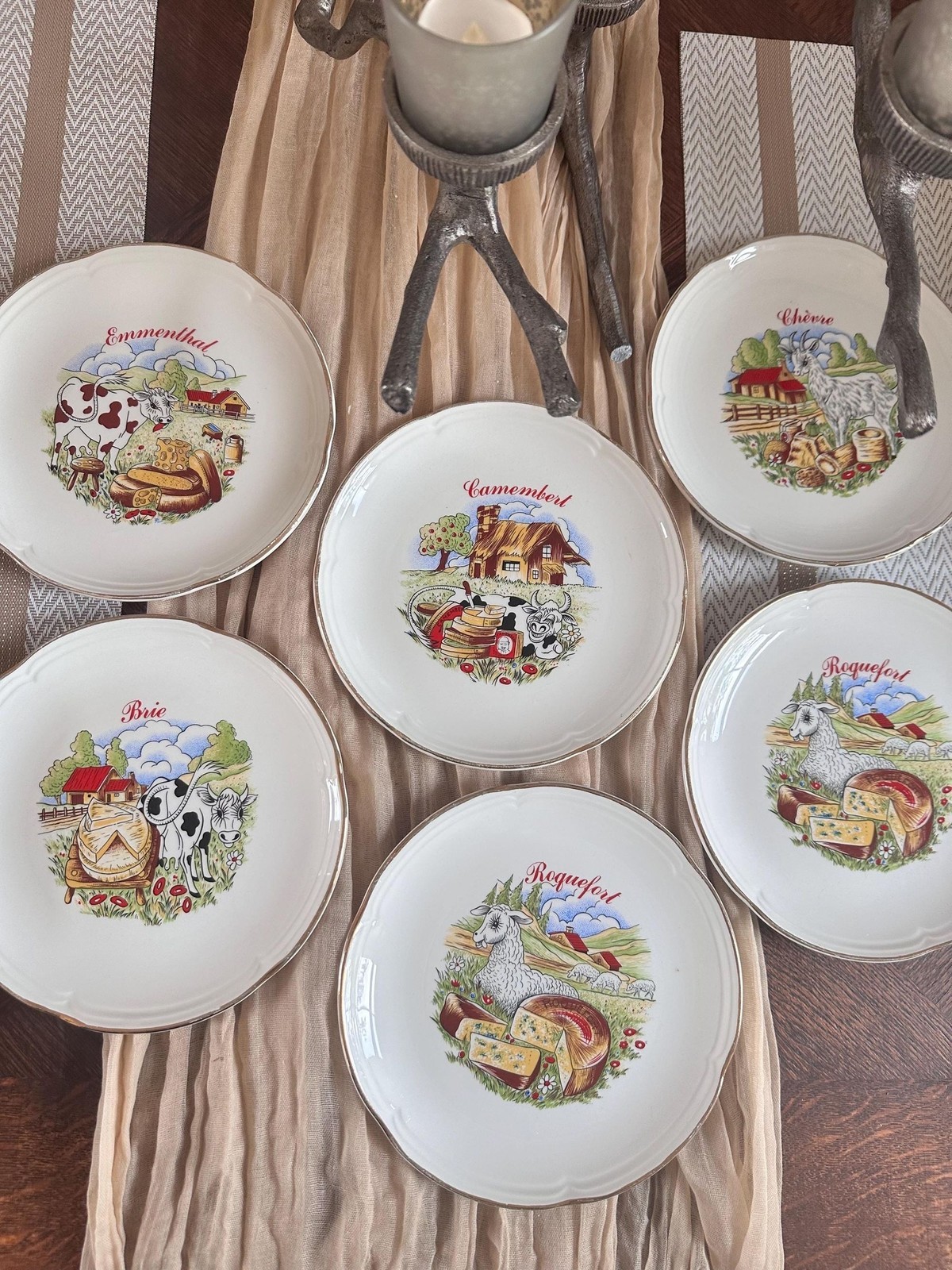 Vintage French Faience Plates - Moulin des Loups Cheese Plates x 6 Dining
