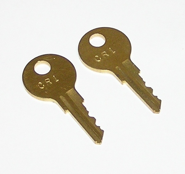 This listing is for a quantity of two (2) CR1 / CR1X keys. High quality solid brass keys. These keys fit the cabinet on many older sanitary napkin dispensers and other vending machines. The locks may be stamped CR1 or CR1X. They are the same key.