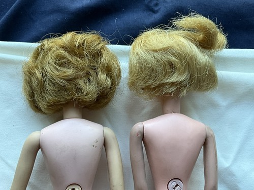 This is a lot of two different Tressy dolls. They are in used vintage condition with no clothes or key. There are markings on their legs and their hair is rough. Great for parts or dressing up and adding as a collection.
