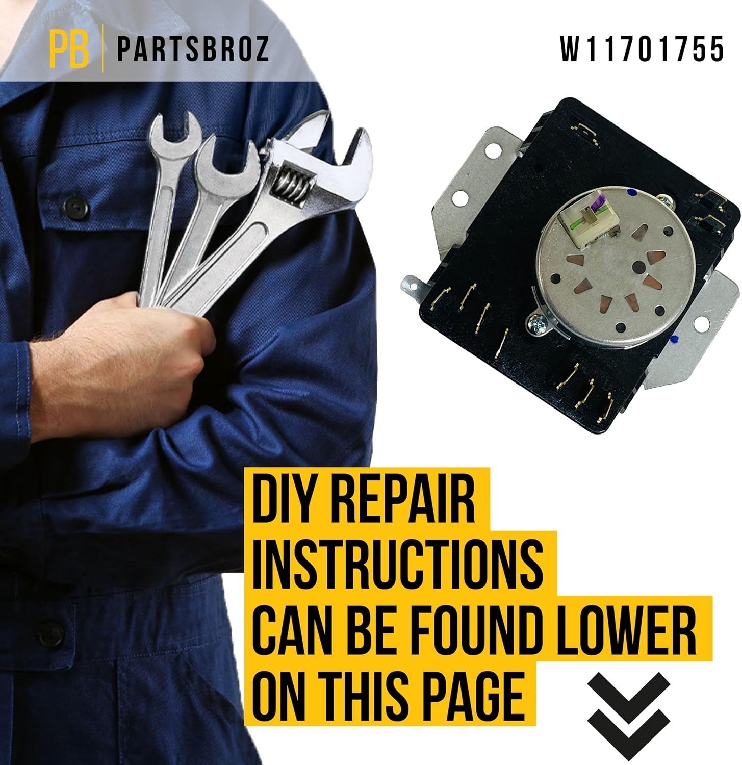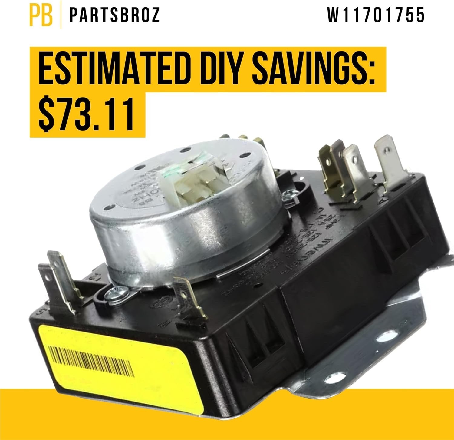 PartsBroz W11701755 Timer - Compatible With Whirlpool Maytag Dryer - Replaces AP7225135 PS17629166 W11566736 - Ultra Durable Replacement