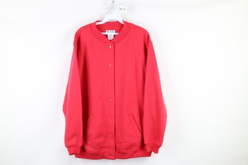 Vintage 90s Streetwear Womens Medium Blank Full Button Sweatshirt Jacket Pink