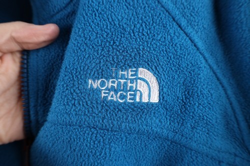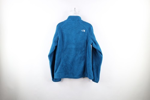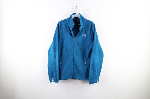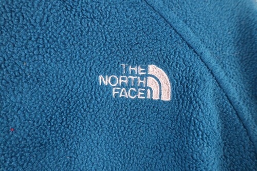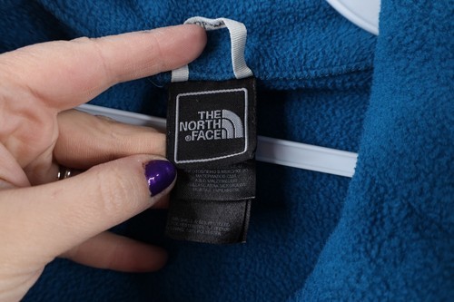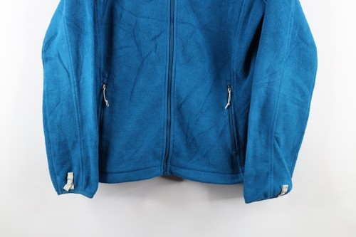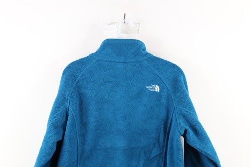 The North Face Womens Medium Distressed Spell Out Full Zip Fleece Jacket Blue