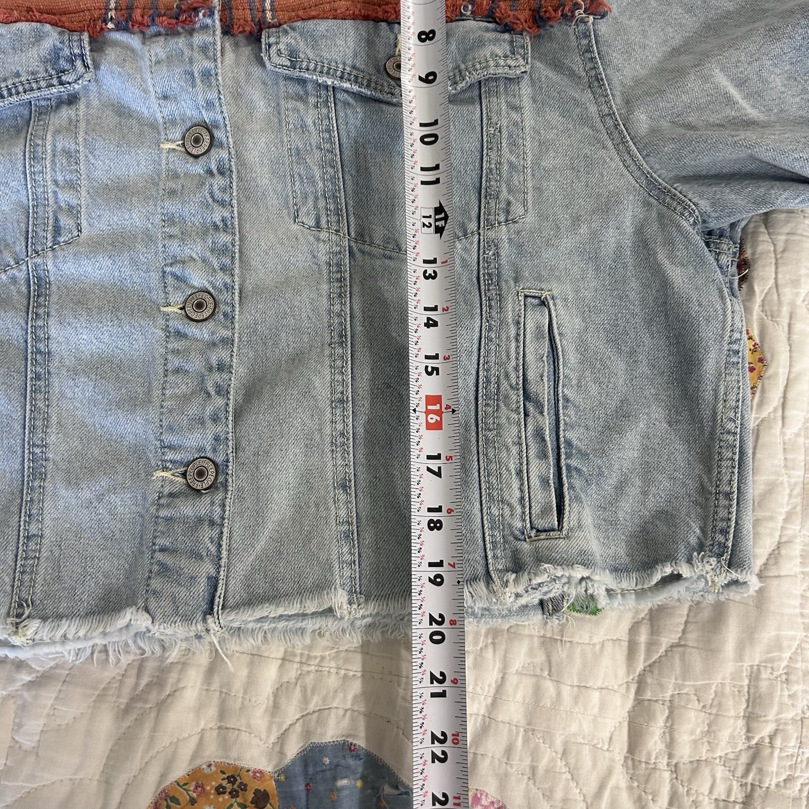 Free People Women?s Baja Hooded Denim Crop Jacket Western Boho Style Small